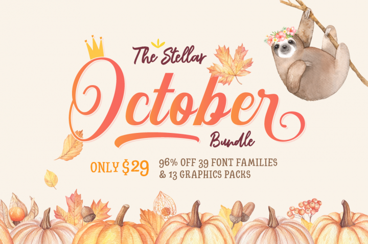 Октябрь, премиальные шрифты и графика