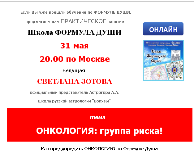 Онкология: группа риска! [Школа Формула души] [Светлана Зотова]