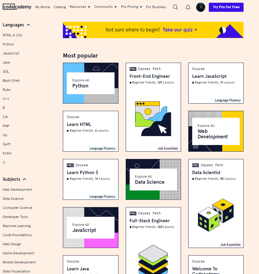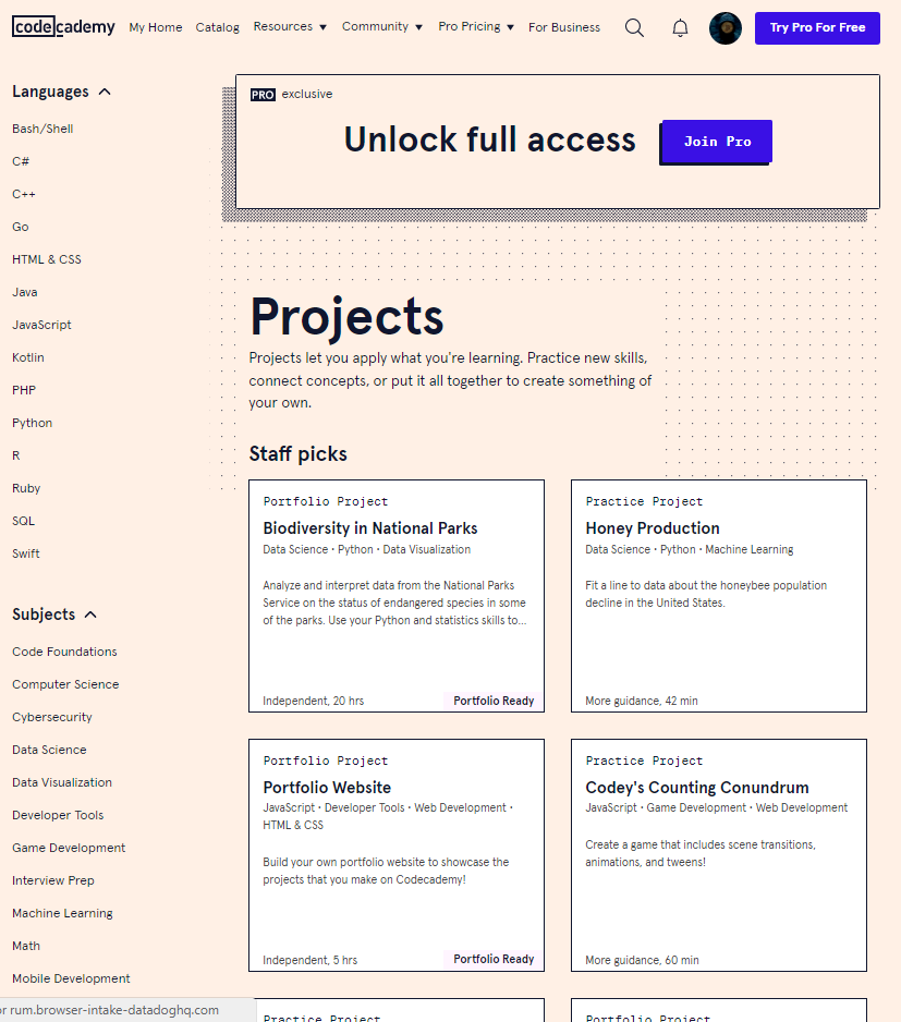 Онлайн-платформа по обучению языкам программирования [codecademy.com] [№1 на 1 год]