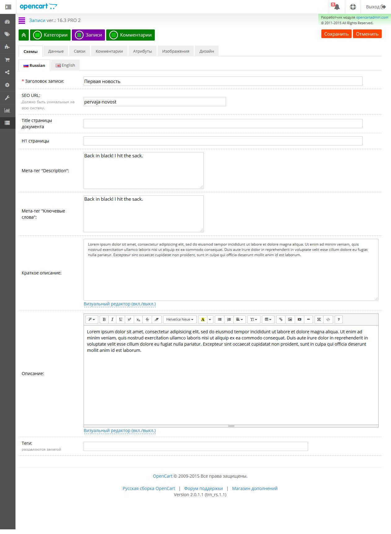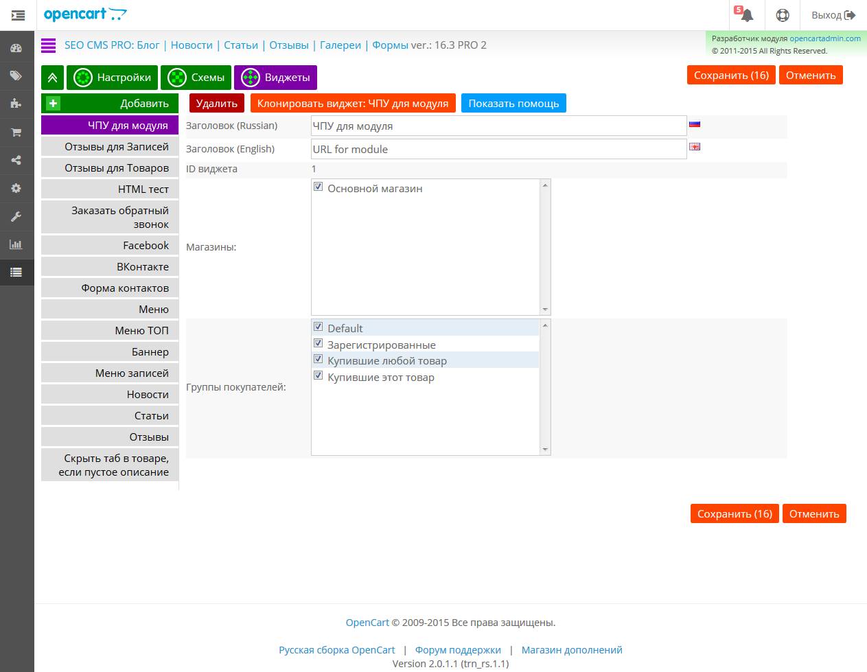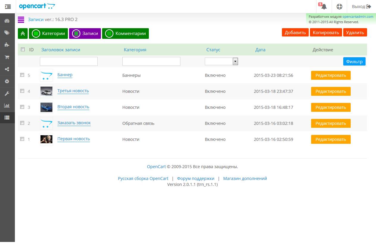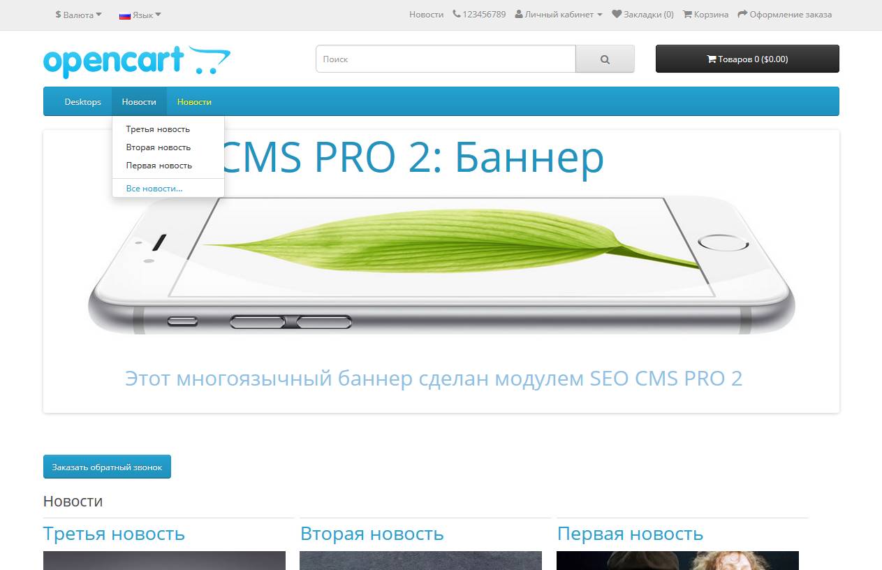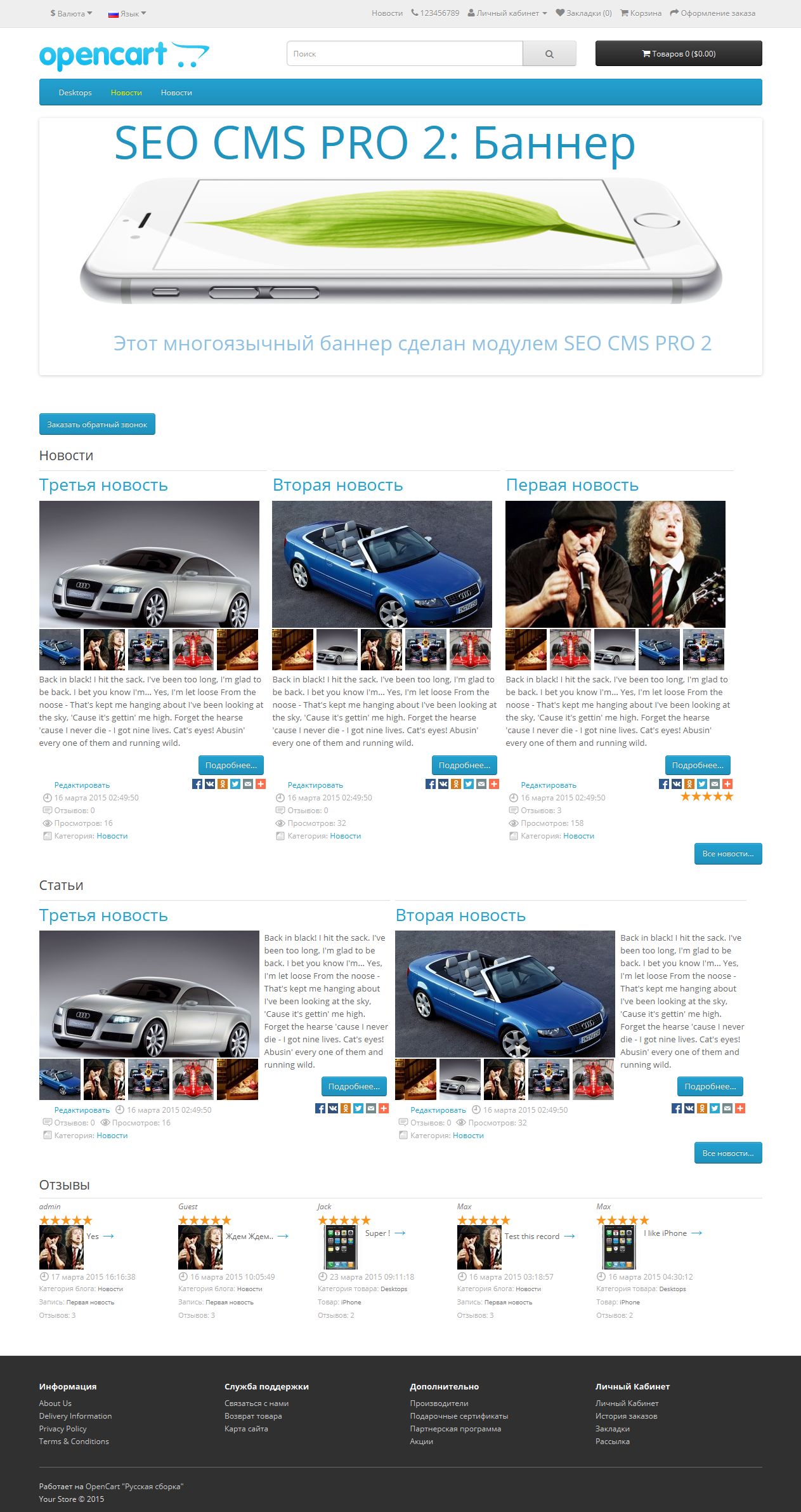 [Opencart 2.х] OC 2: SEO CMS TOP: Блог | Новости | Отзывы | Галерея | Формы