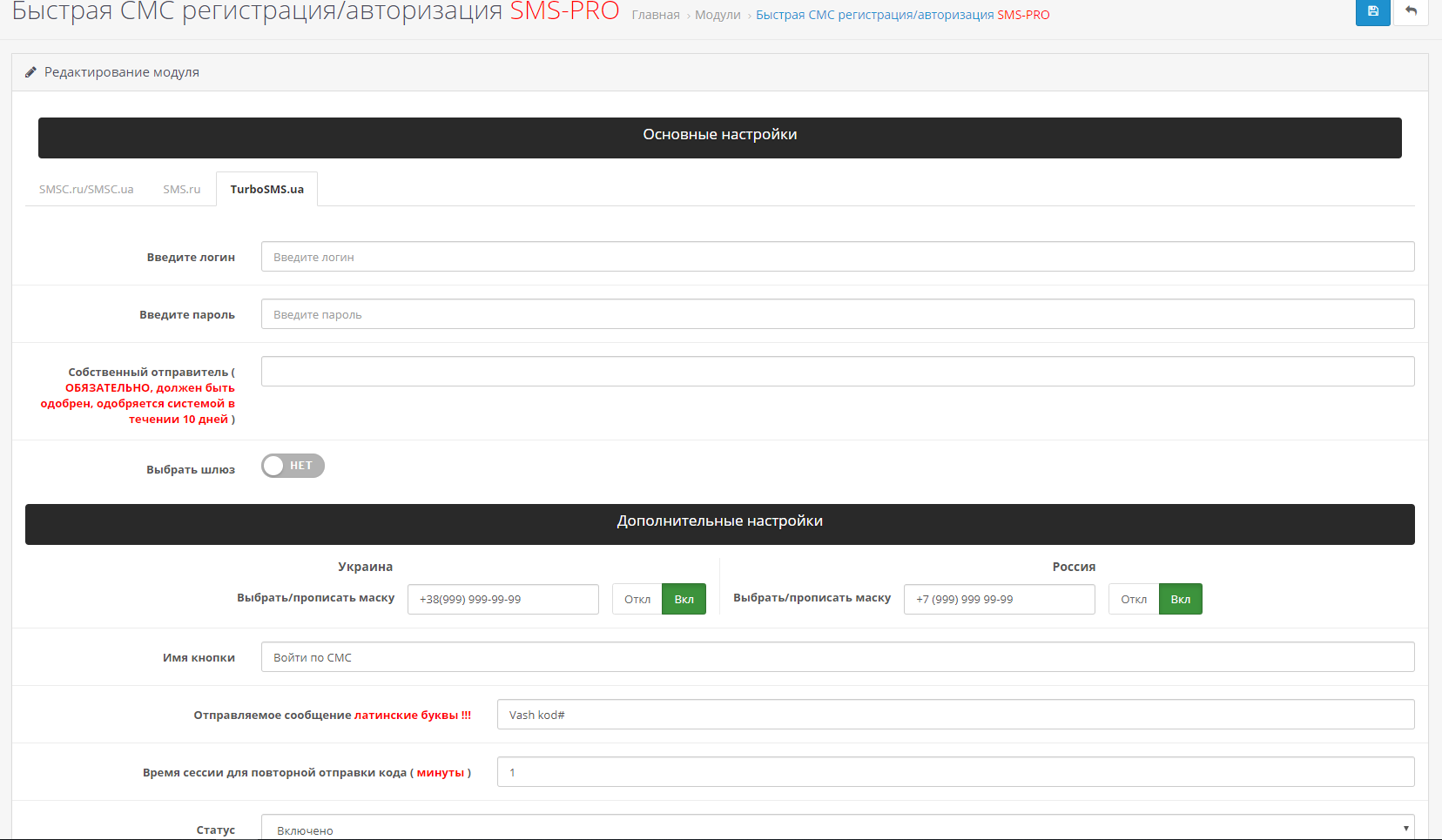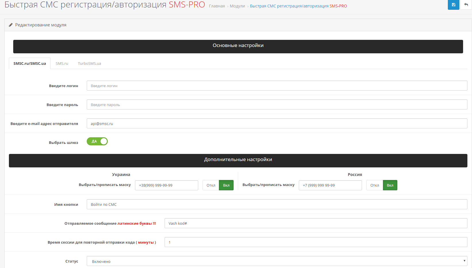[OpenCart] Быстрая СМС регистрация/авторизация SMS-PRO