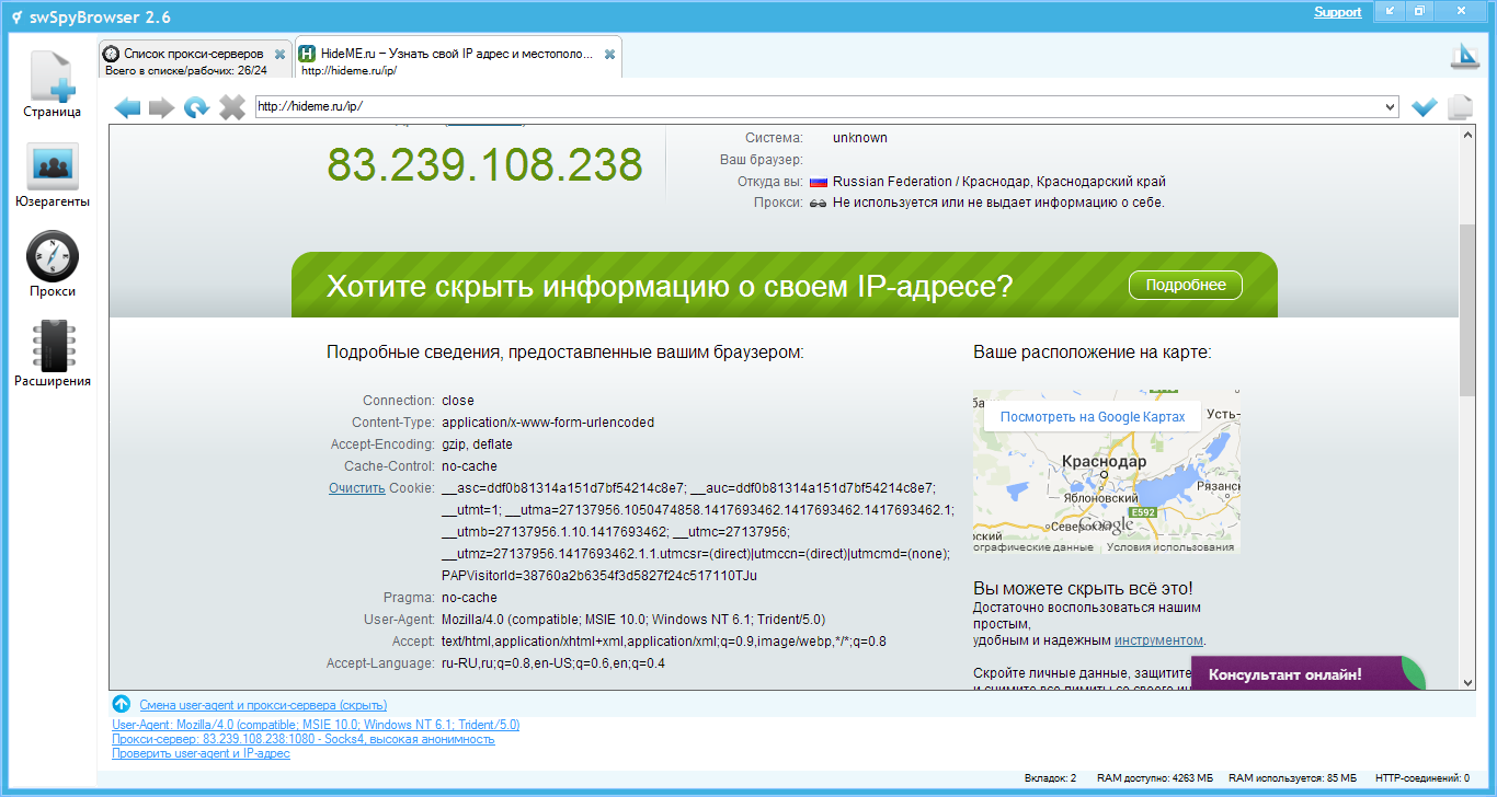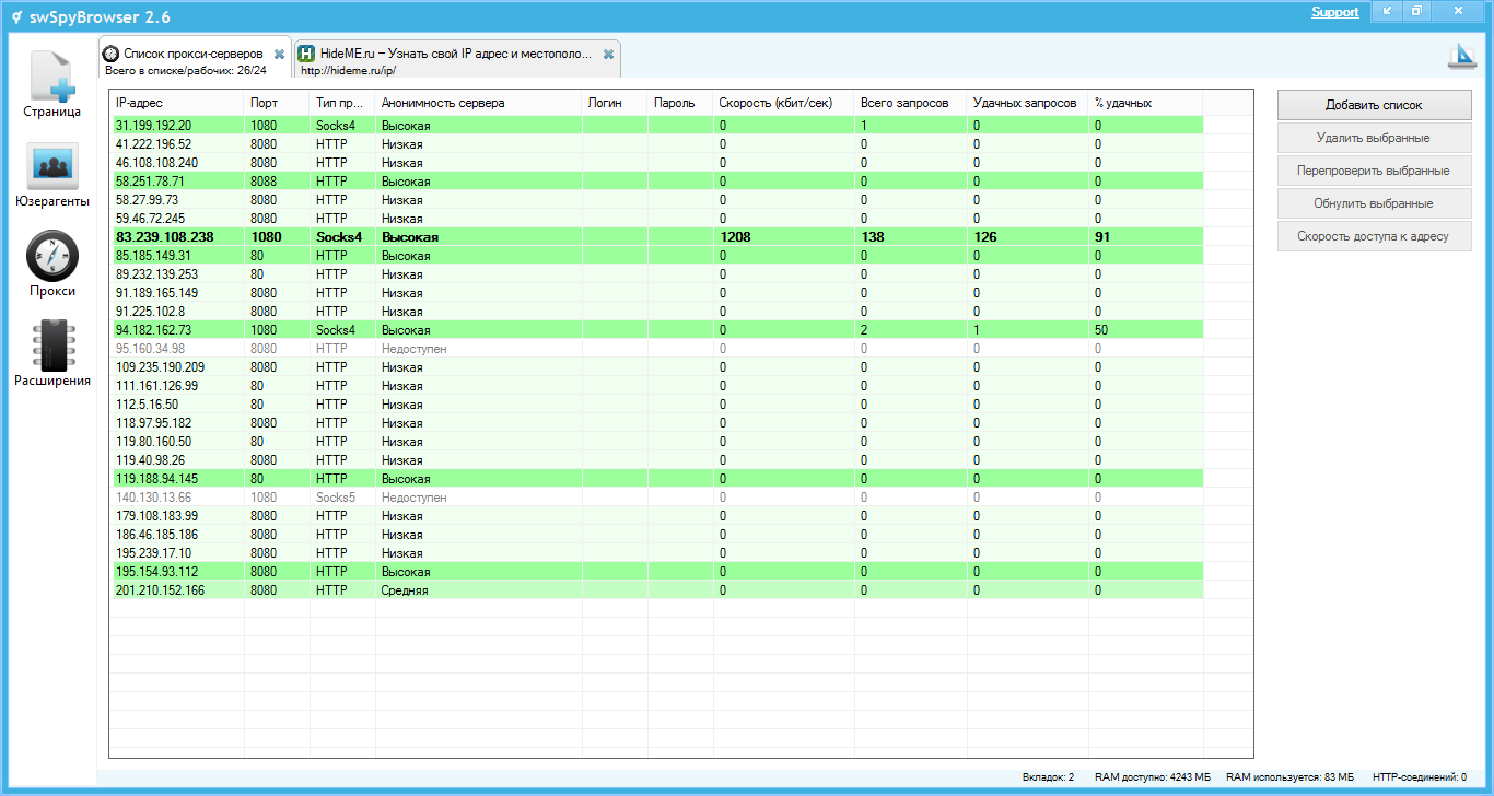 (Опт) swSpyBrowser - интернет мультибраузер в каждой вкладке свои cookies, useragent и IP-адрес