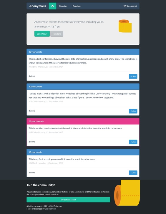 [PHP] Anonymous - Secret Confessions (анонимные признания)