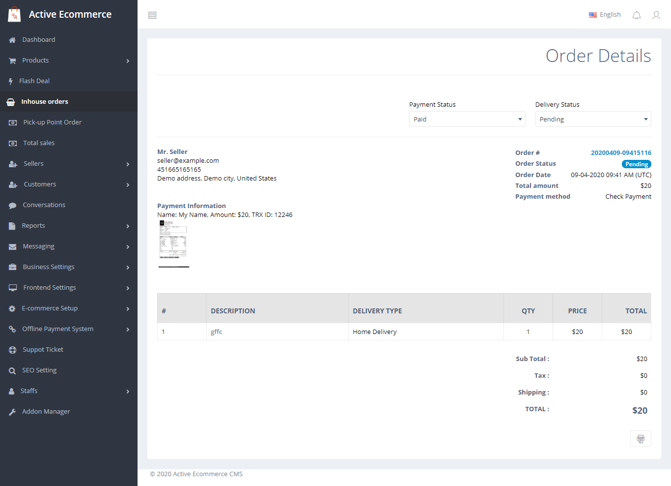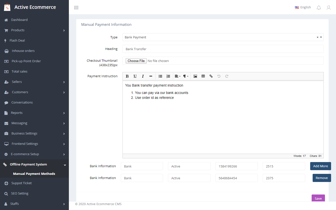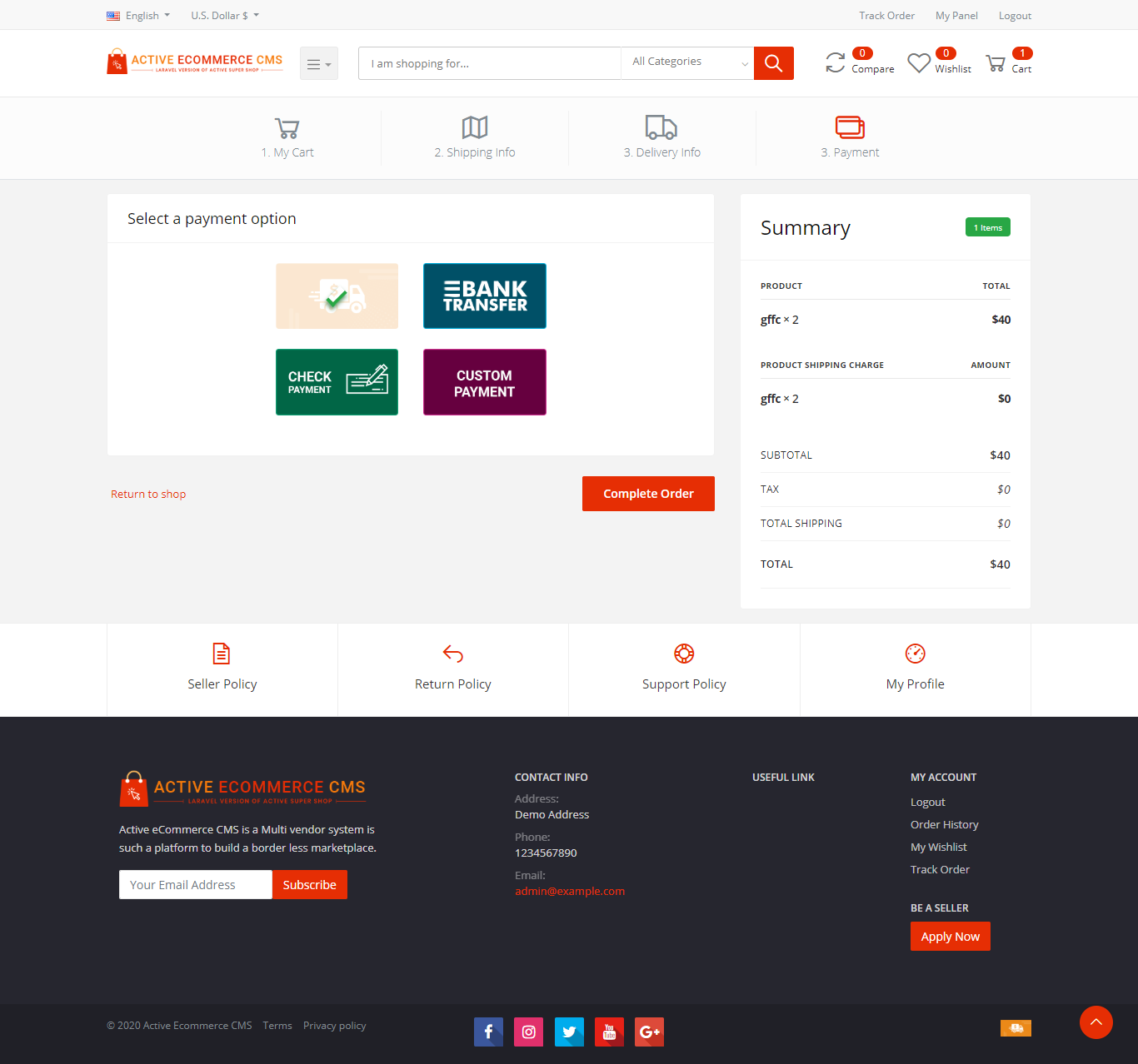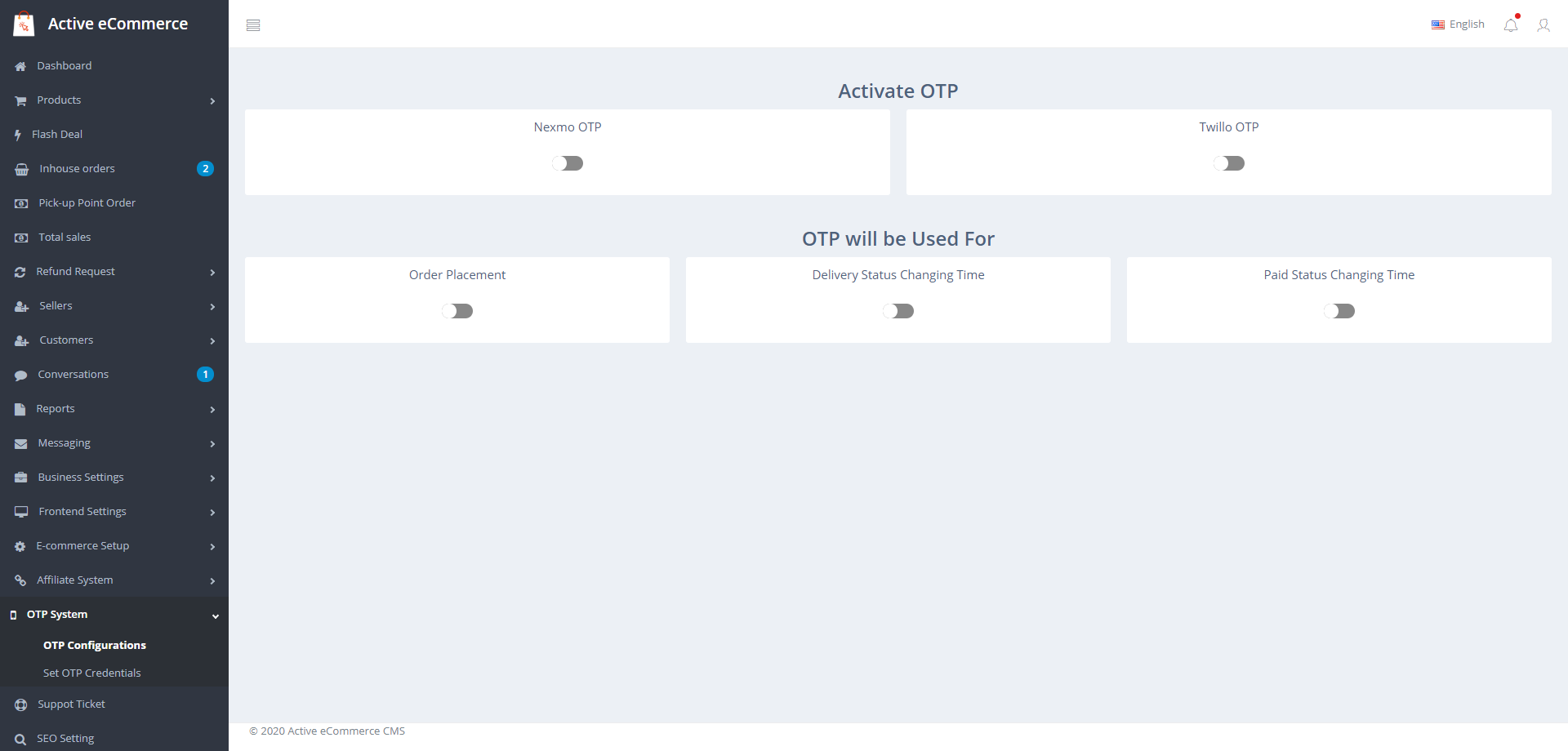 Плагины Active eCommerce Offline Payment Add-on и Active eCommerce OTP add-on