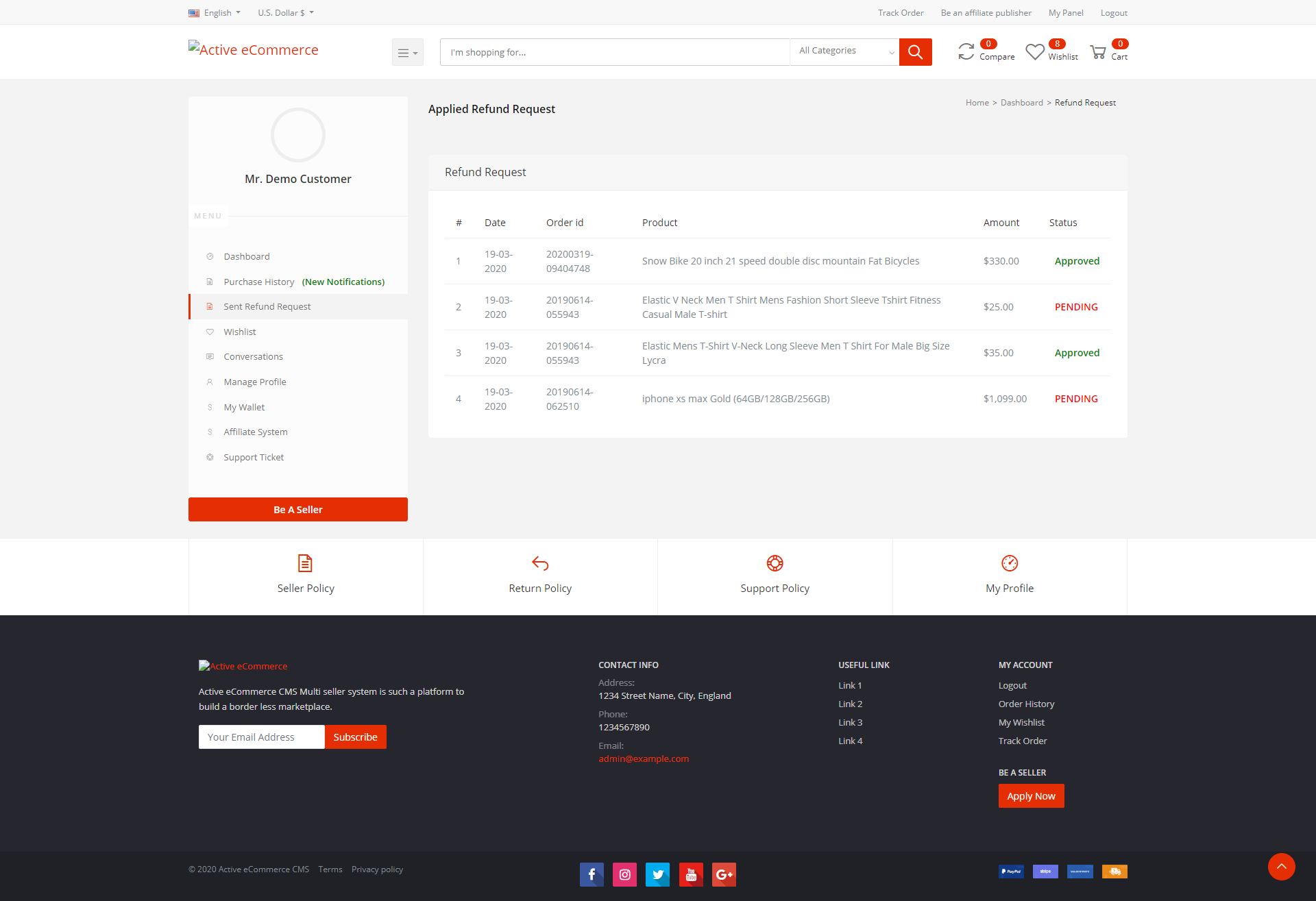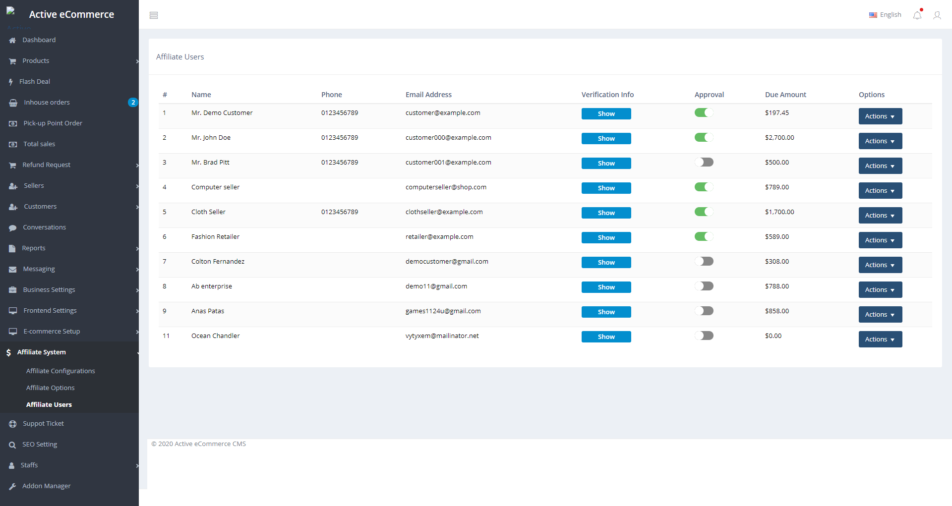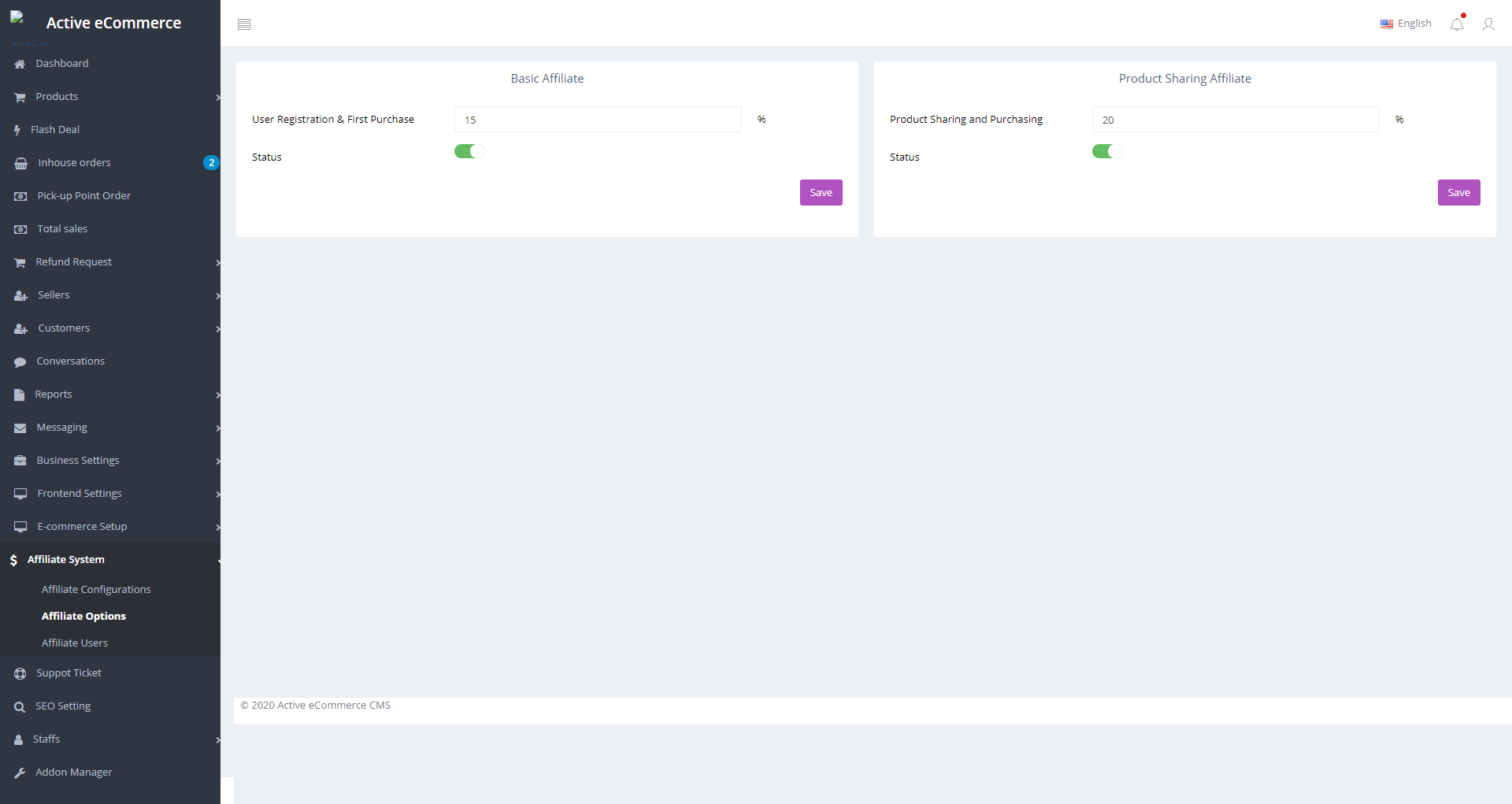 Плагины Active eCommerce Refund add-on и Active eCommerce Affiliate add-on
