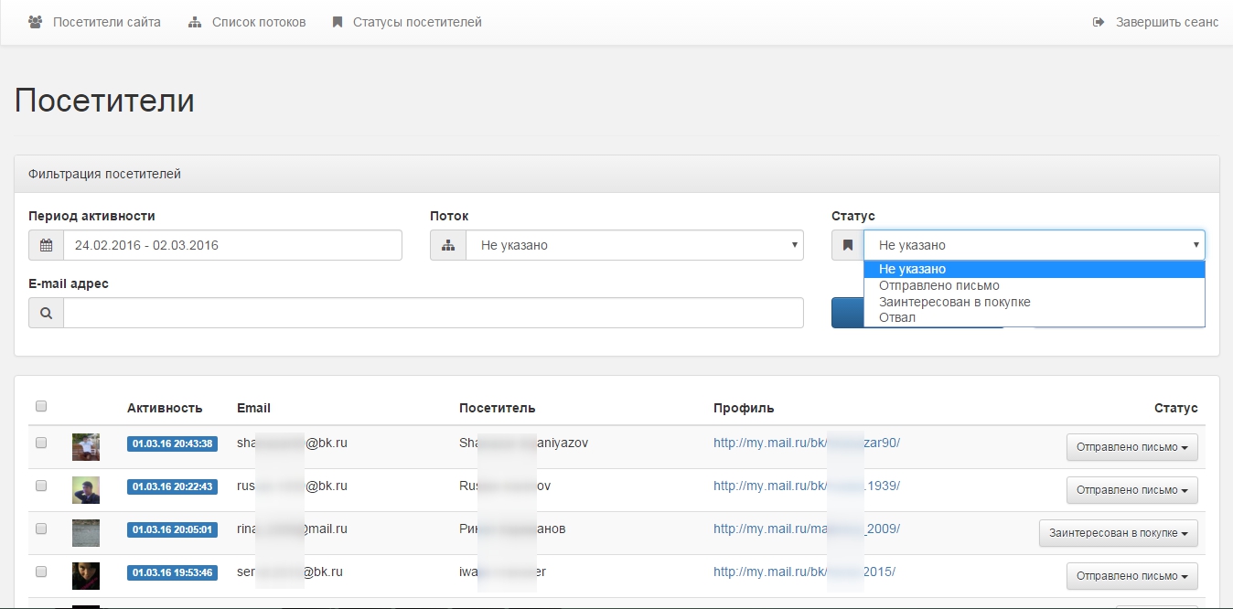 Вы можете организовать e-mail рассылку Ваших товаров и услуг. В Вашей базе будут только свежие, валидные e-mail адреса заинтересованных потенциальных клиентов. Помимо этого Вы можете установить прямой контакт в социальной сети "Мой Мир" и путем личного общения закрыть посетителя на сделку.