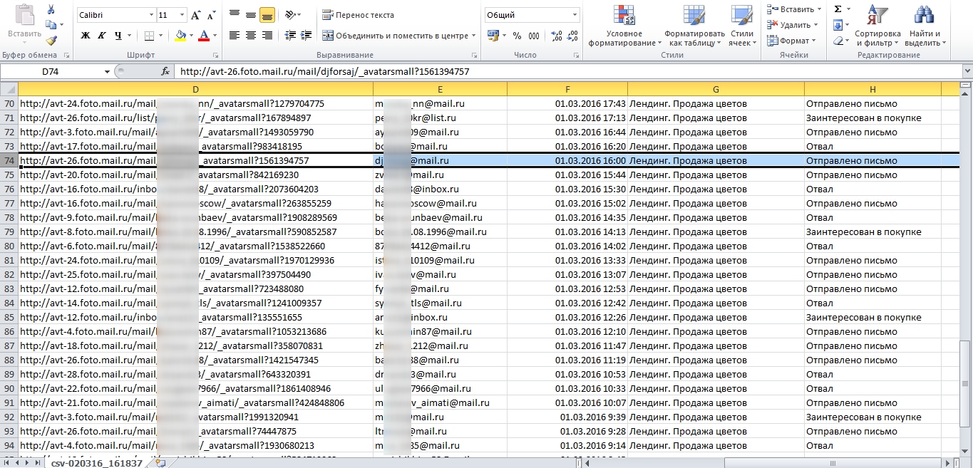 + Все данные можно выгружать в CSV и использовать в любом стороннем софте, например, для массовых рассылок.