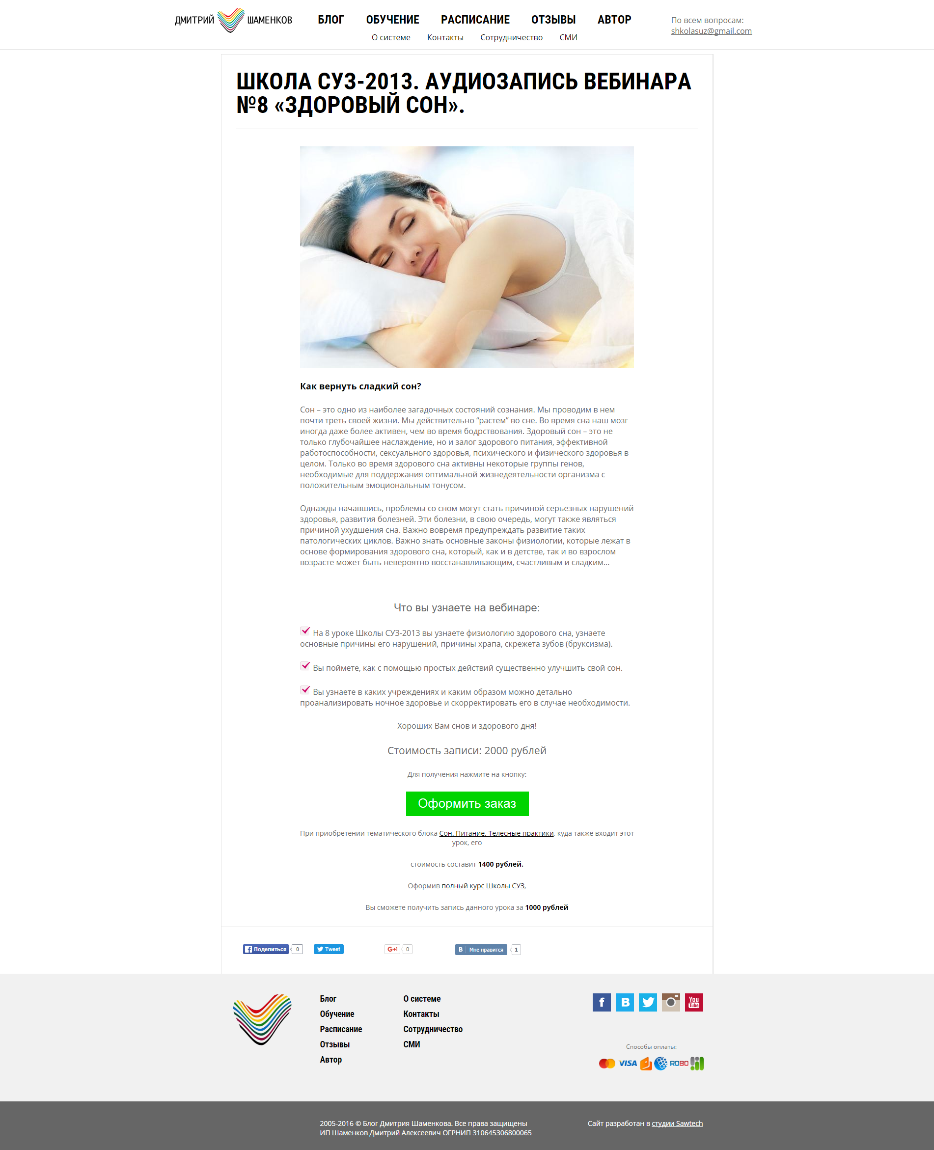 [Повтор] Дмитрий Шаменков. Семинар школы СУЗ: «Физиологичное питание»