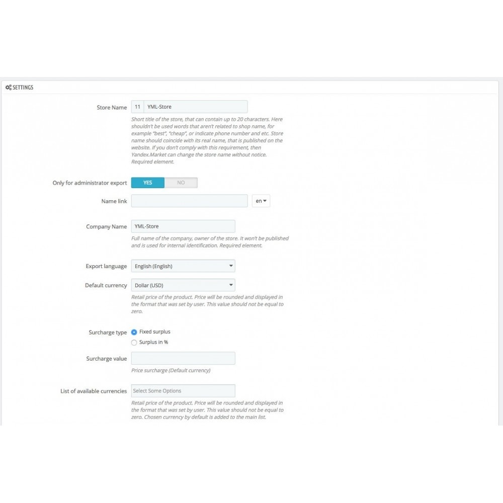[Prestashop] Модуль YML export for Yandex market