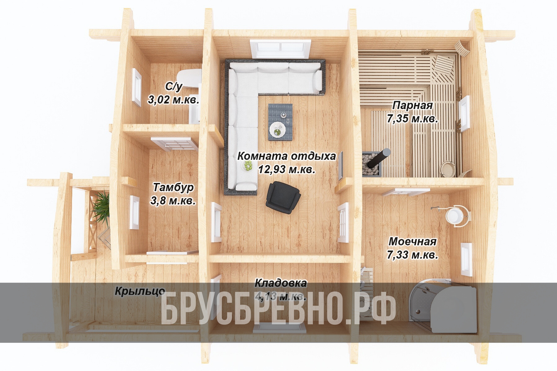 Проект 914 баня 6.3х8.5 брус 150х150 [Андрей Липовка]