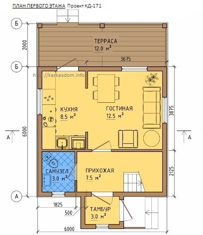 Проект каркасного дома 6х8 84м2 для строительства своими руками Проект КД-171 (комфорт)