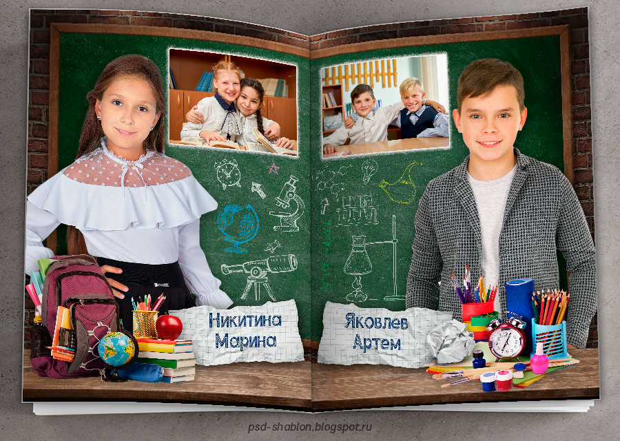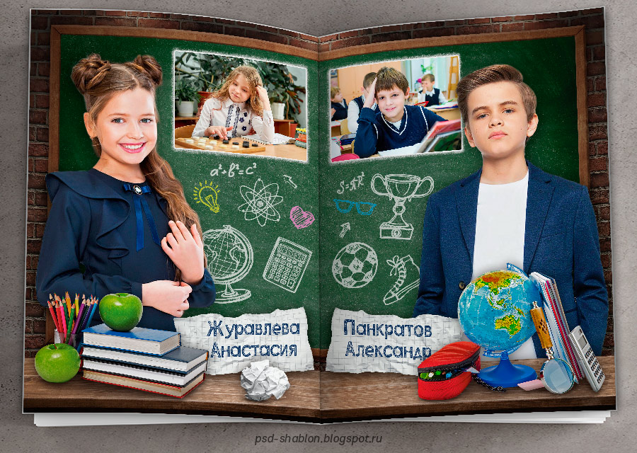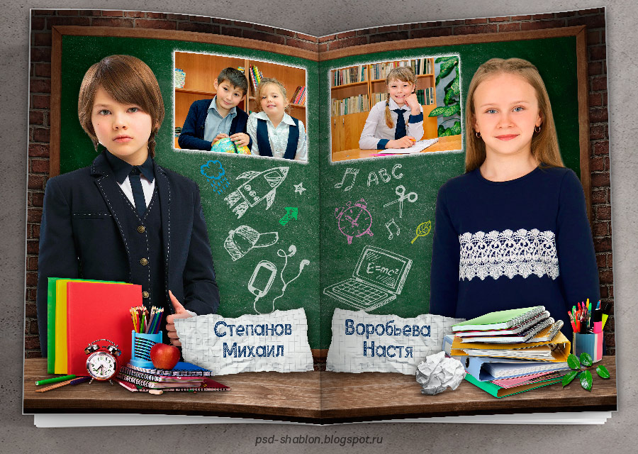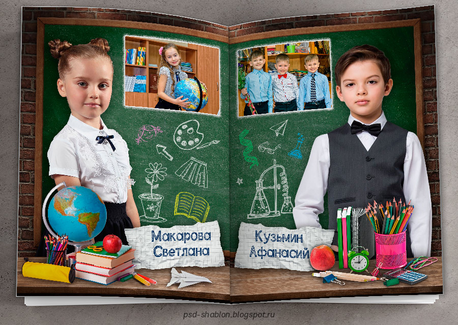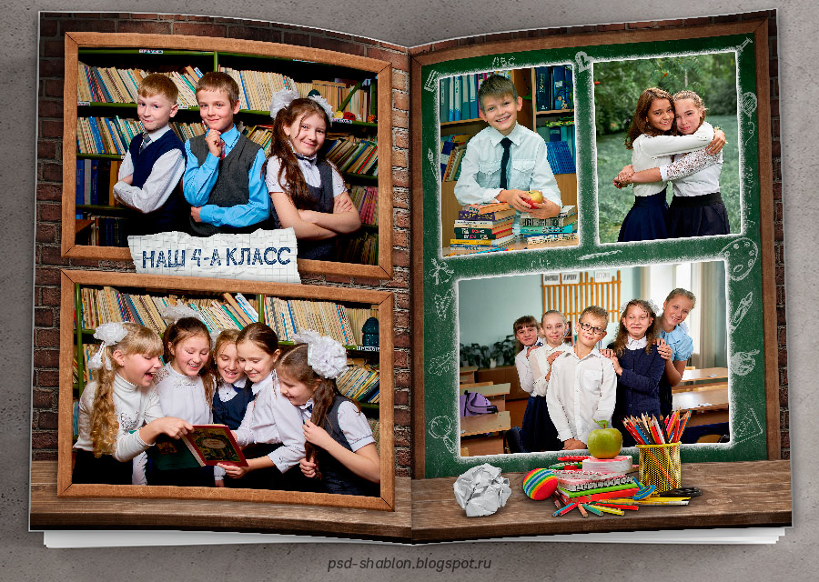 [PSD] Полиграфический макет фотокниги "Школьная доска"