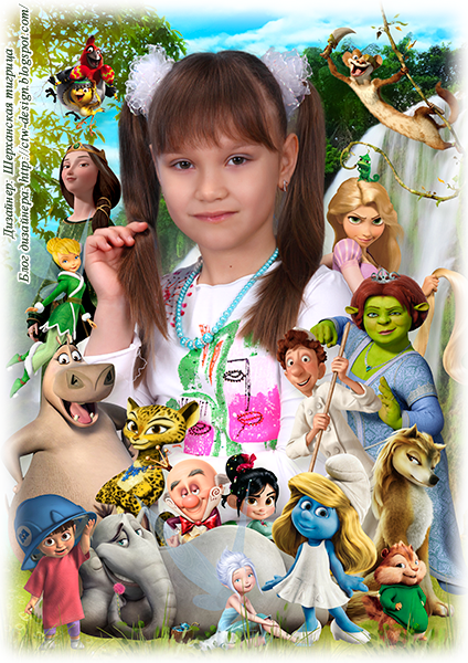 [PSD] Портреты для детского сада с героями мультфильмов-2