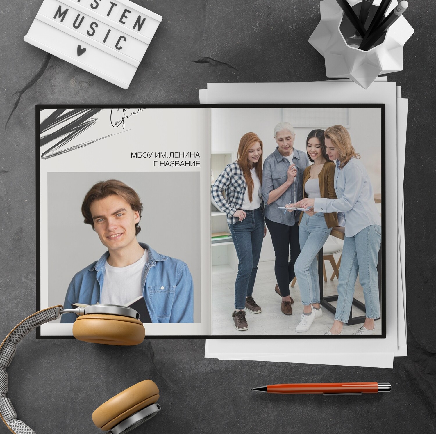 [PSD] Шаблон фотокниги "Штрихи" [mironova.studio]