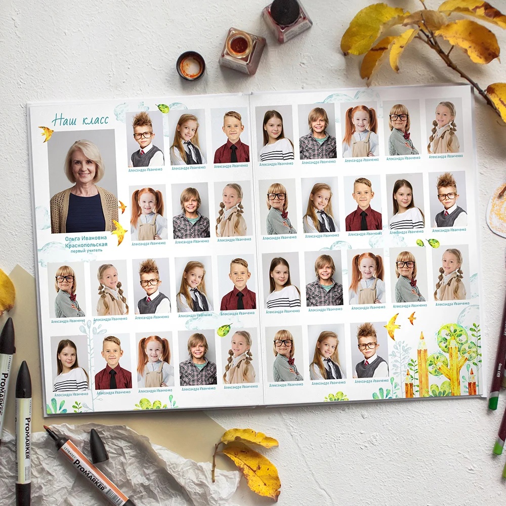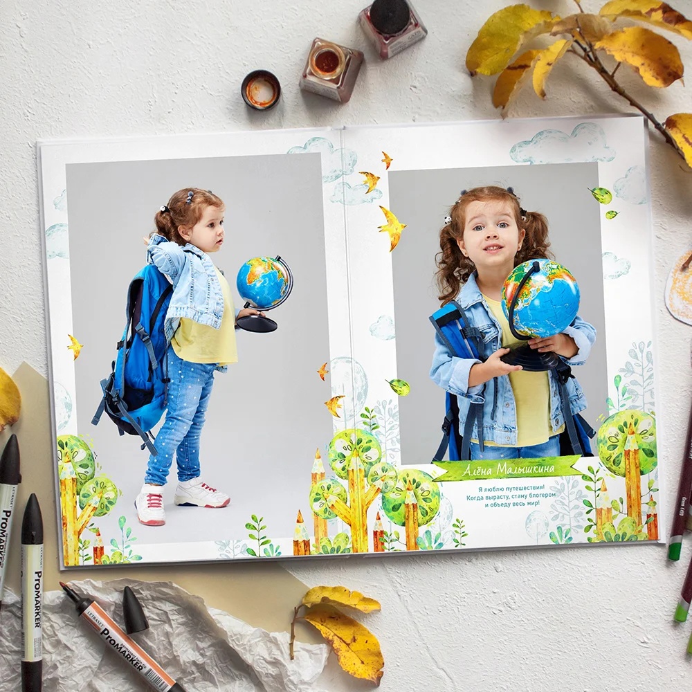 [PSD] Шаблон выпускной фотокниги Дизайн "Школьный сад" [Ксения Фёдорова]