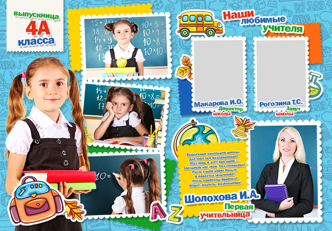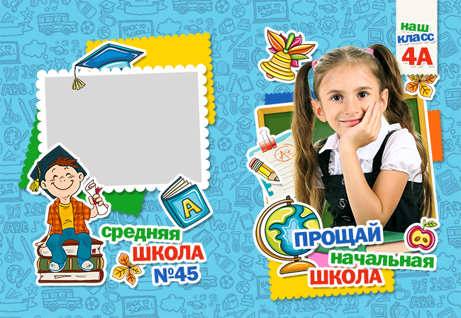[PSD]Выпускная фотокнига для начальной школы - "Выпускники начальной школы". Макет № 525