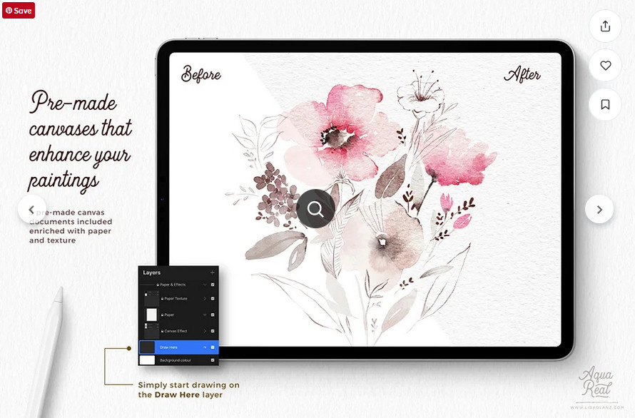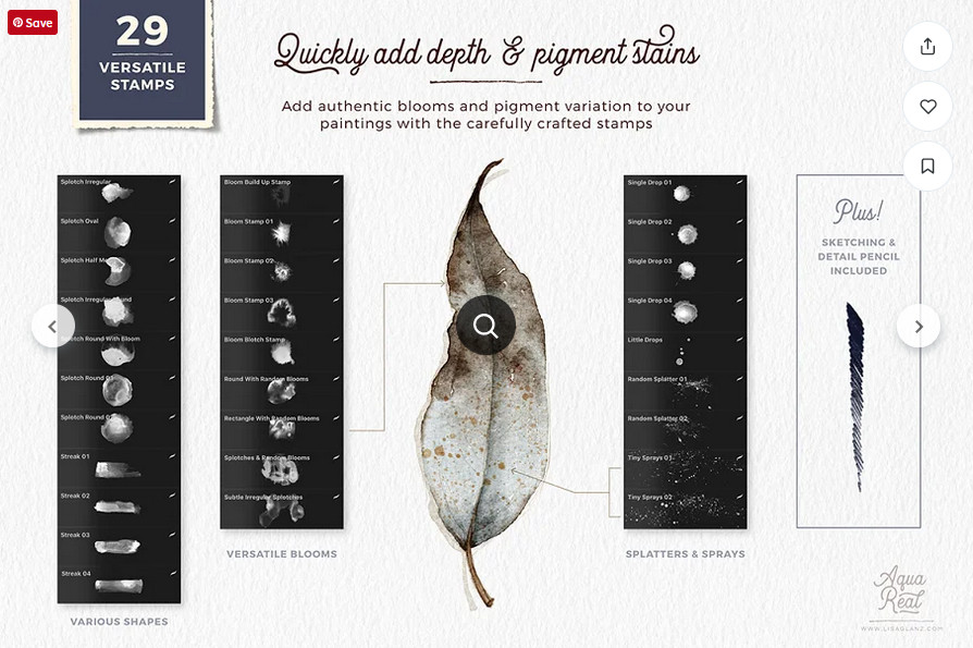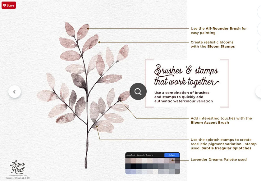 Реалистичные акварельные кисти. AquaReal Procreate Watercolor Set [Lisa Glanz]
