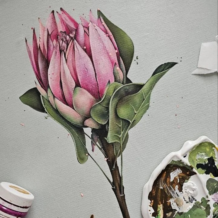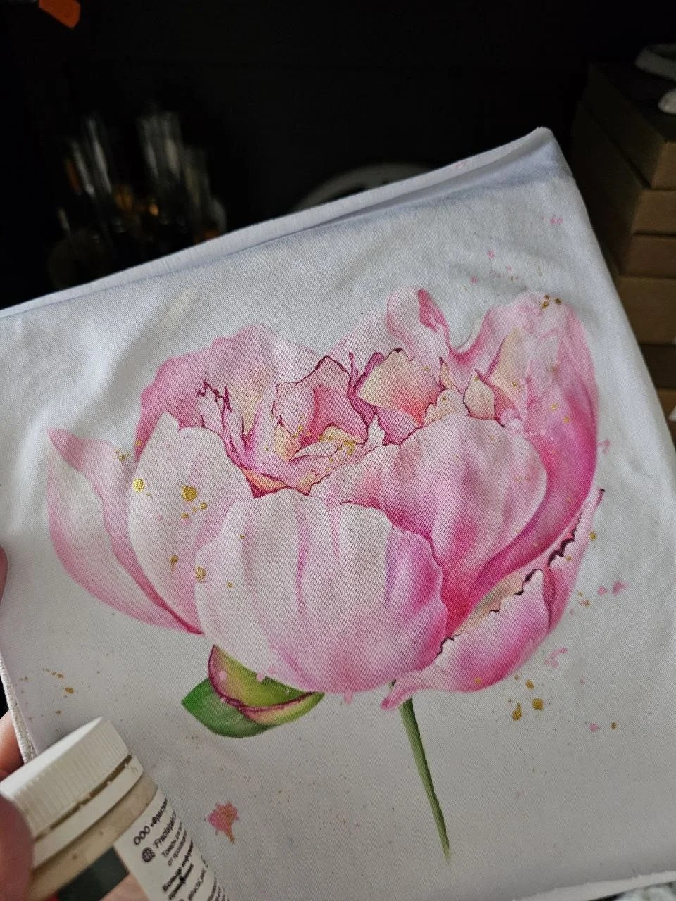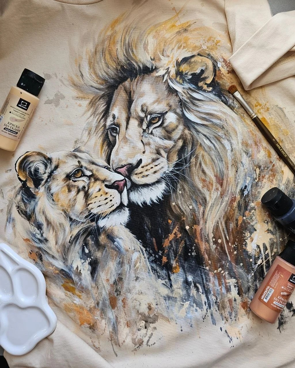 [Роспись по ткани] Пионы + протея + лимоны + лев (март 2024) [Даша Лисенкова]