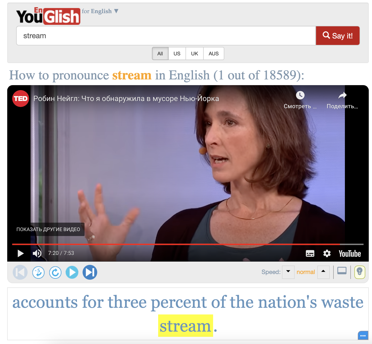 Хотите найти произношение целой фразы на видео?