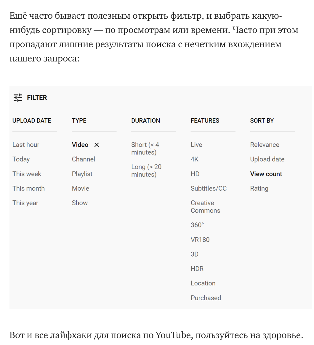 Лайфхаки по продвинутому поиску на Youtube