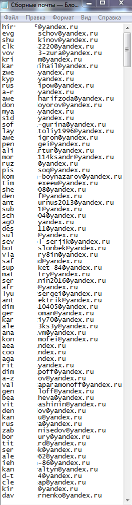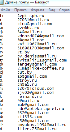 Пример спаршенных почт:
