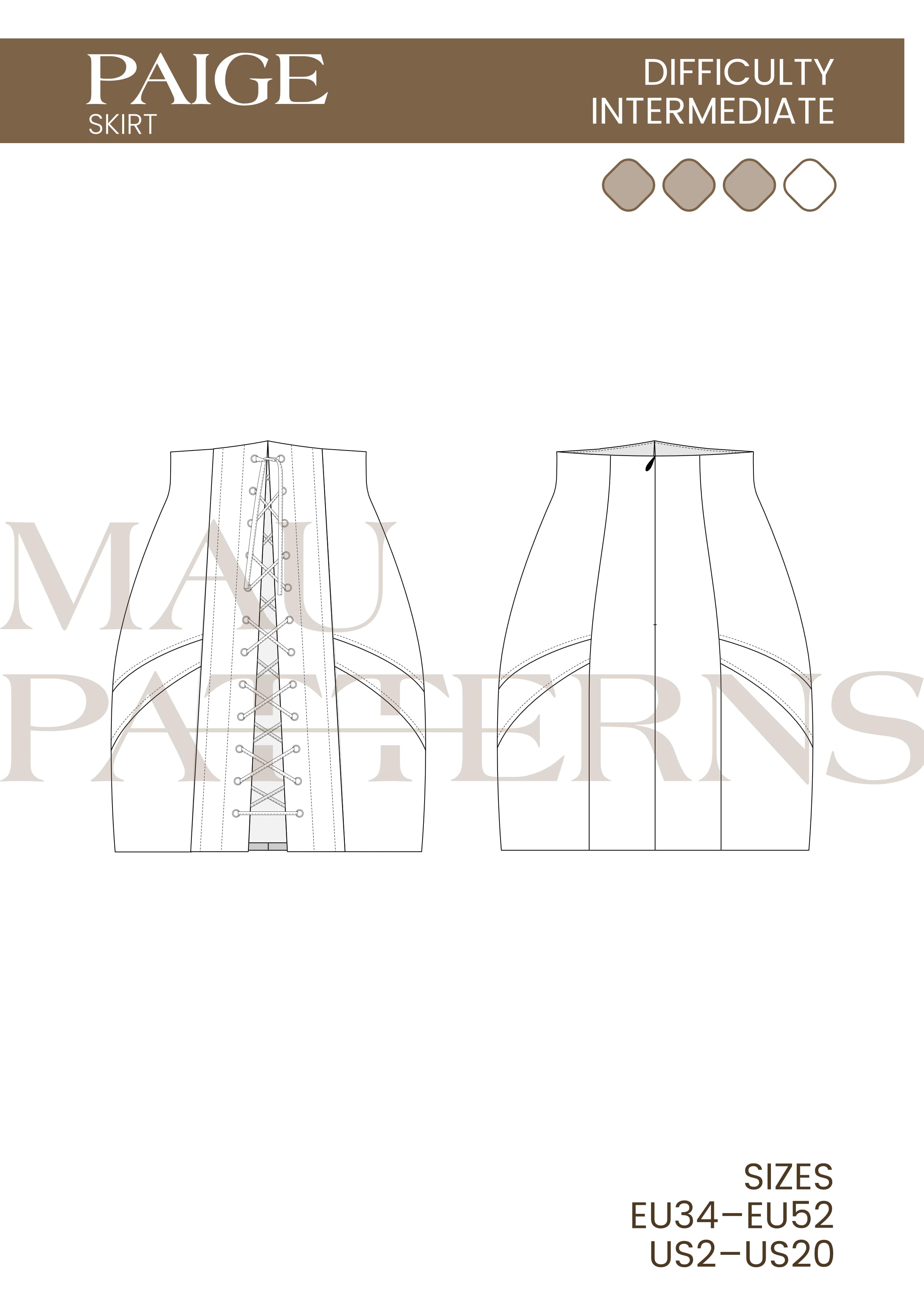 [Шитье] Paige skirt sewing pattern. Размеры 34-52, рост 162-169 (eng) [Mau Patterns]