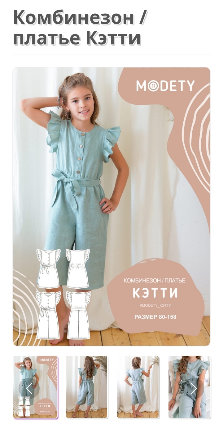 [Шитье] Выкройки комбинезона-платья Кэтти, 80-158 [Modety]