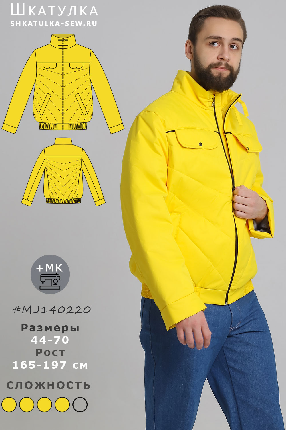 [Шитье] Выкройки мужской утепленной спортивной куртки MJ140220, размеры 44-58, рост 178-183 [Шкатулка]