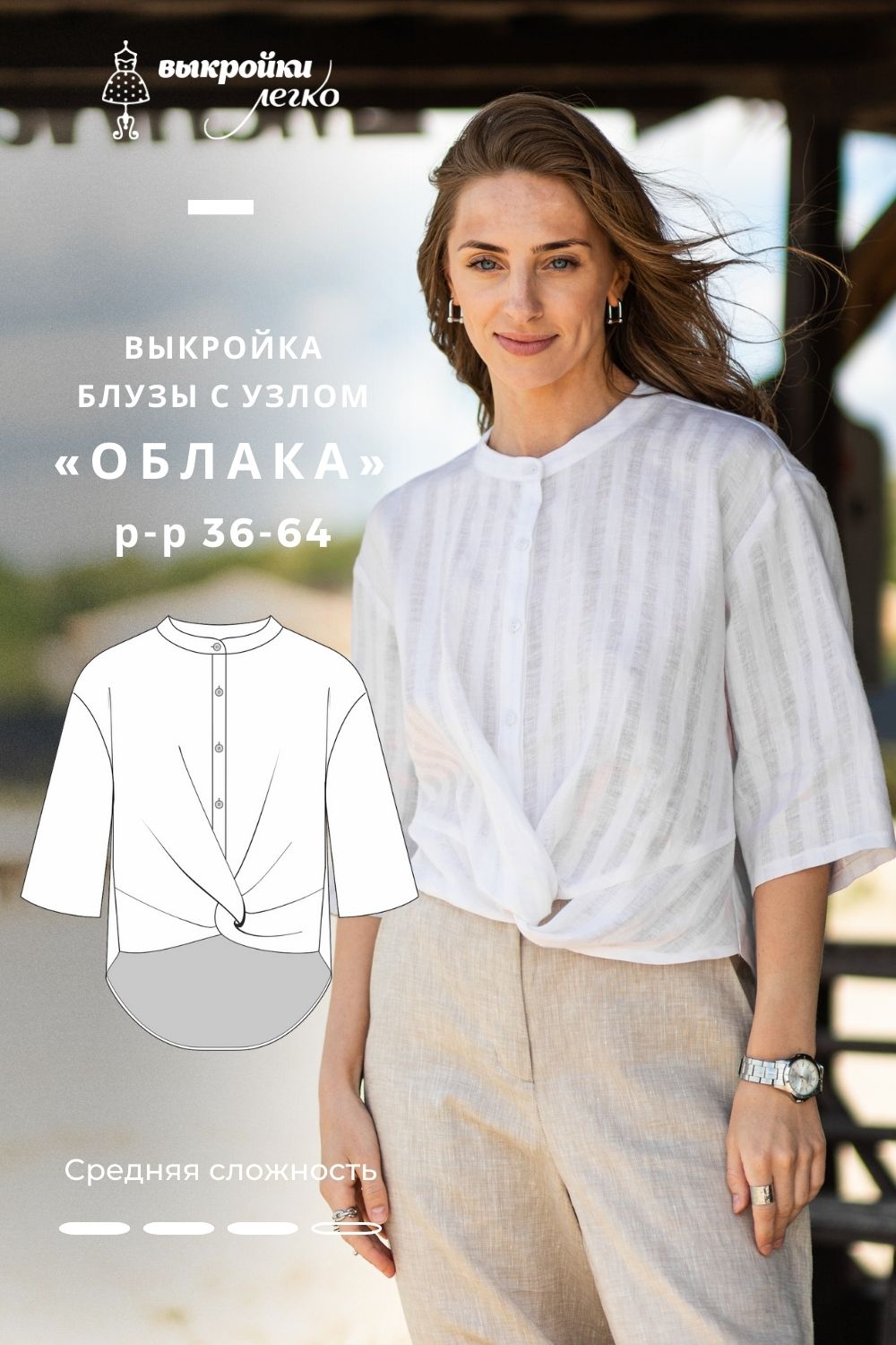 [Шитьё] Блуза с узлом Облака. Размер 36-64. Рост 164 [patterneasy]