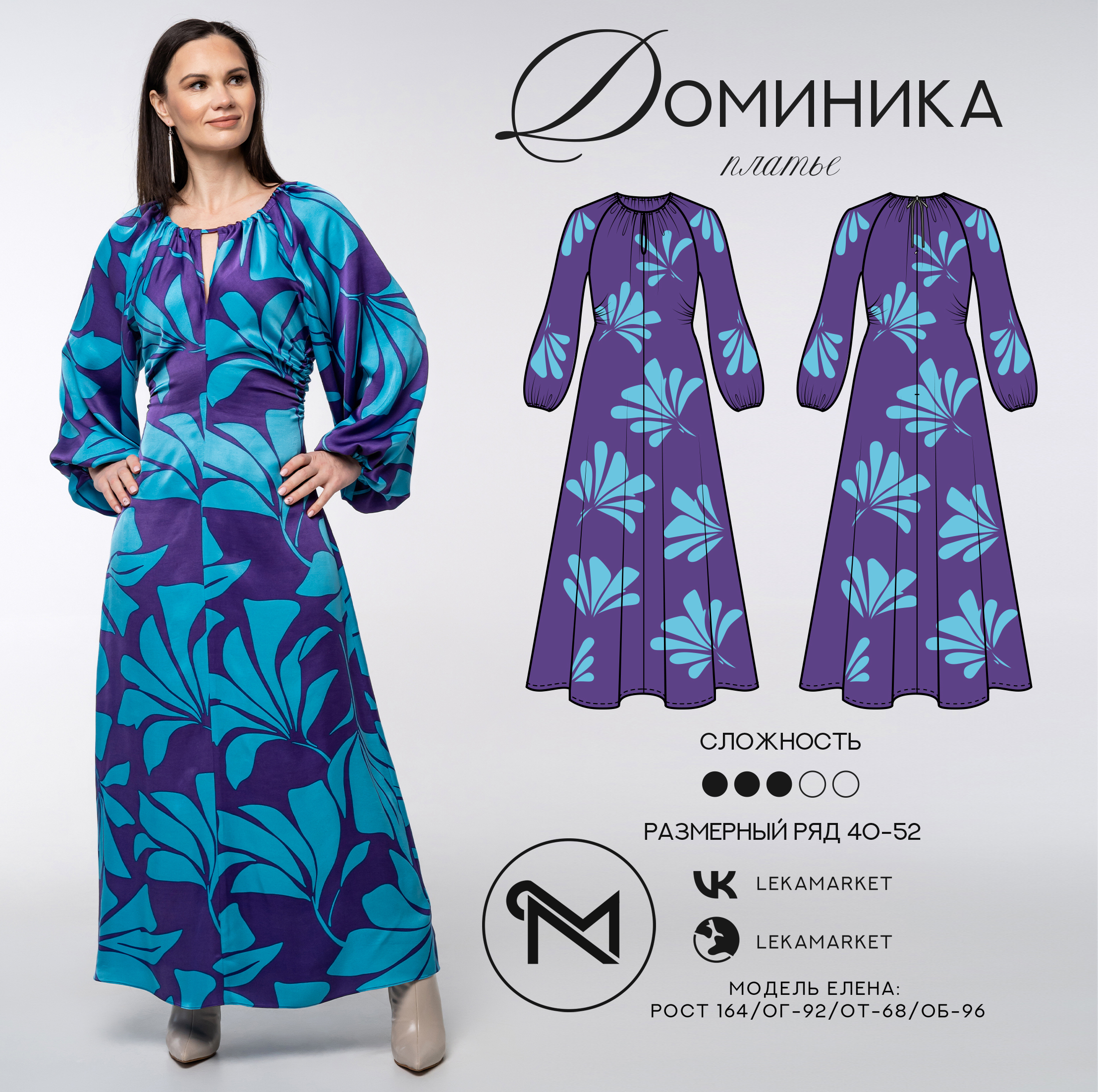 [Шитьё] Платье Доминика. Размер 40-52. Рост 164 [ЛекаМаркет]
