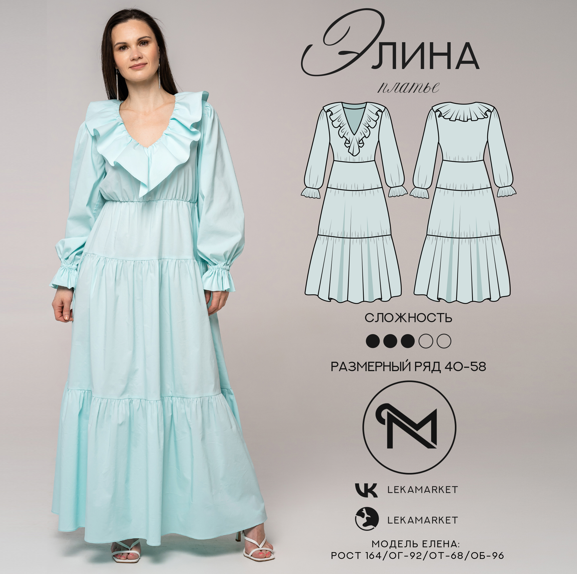 [Шитьё] Платье Элина. Размер 40-58. Рост 164 [ЛекаМаркет]