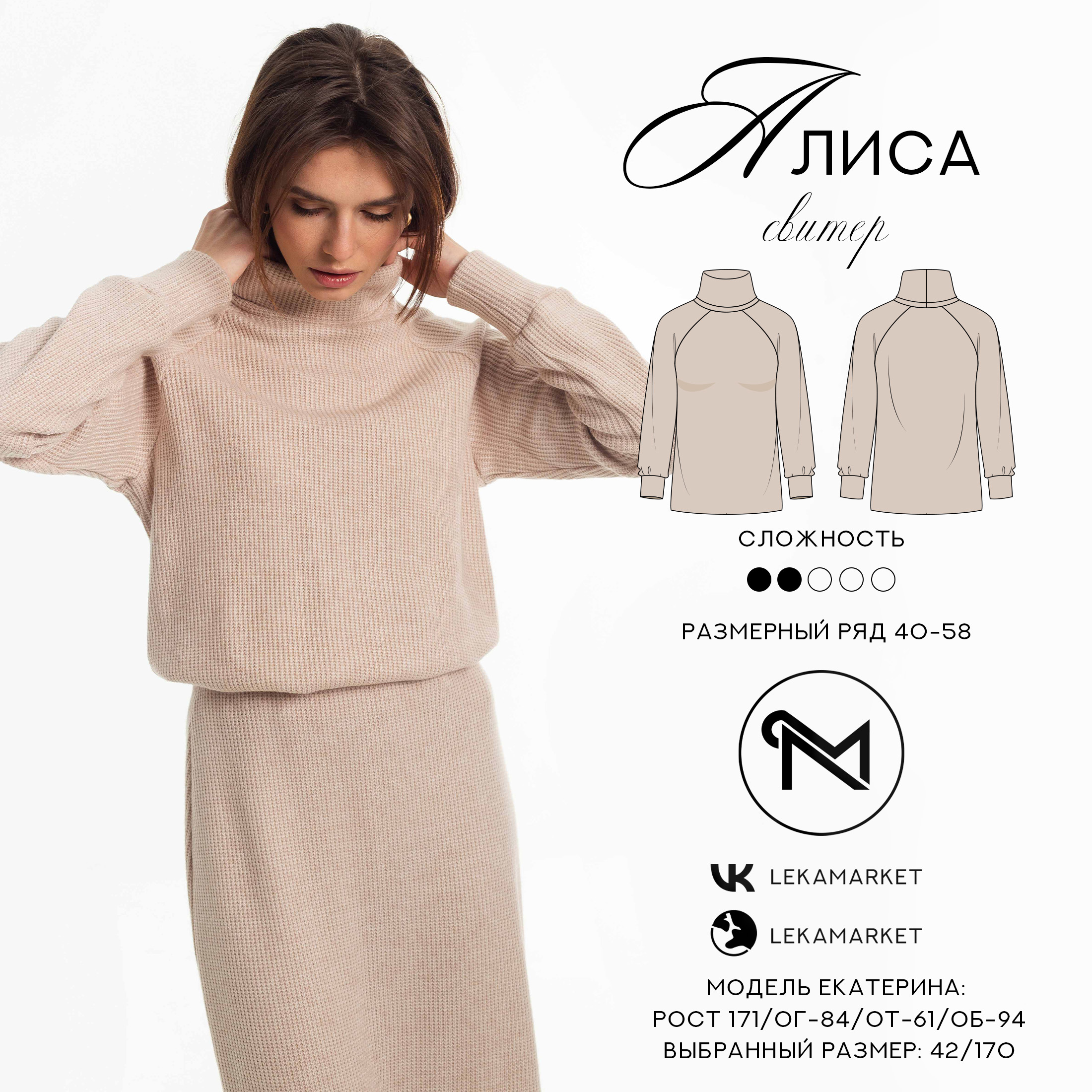 [Шитьё] Свитер Алиса. Размер 40-58. Рост 164 [ЛекаМаркет]
