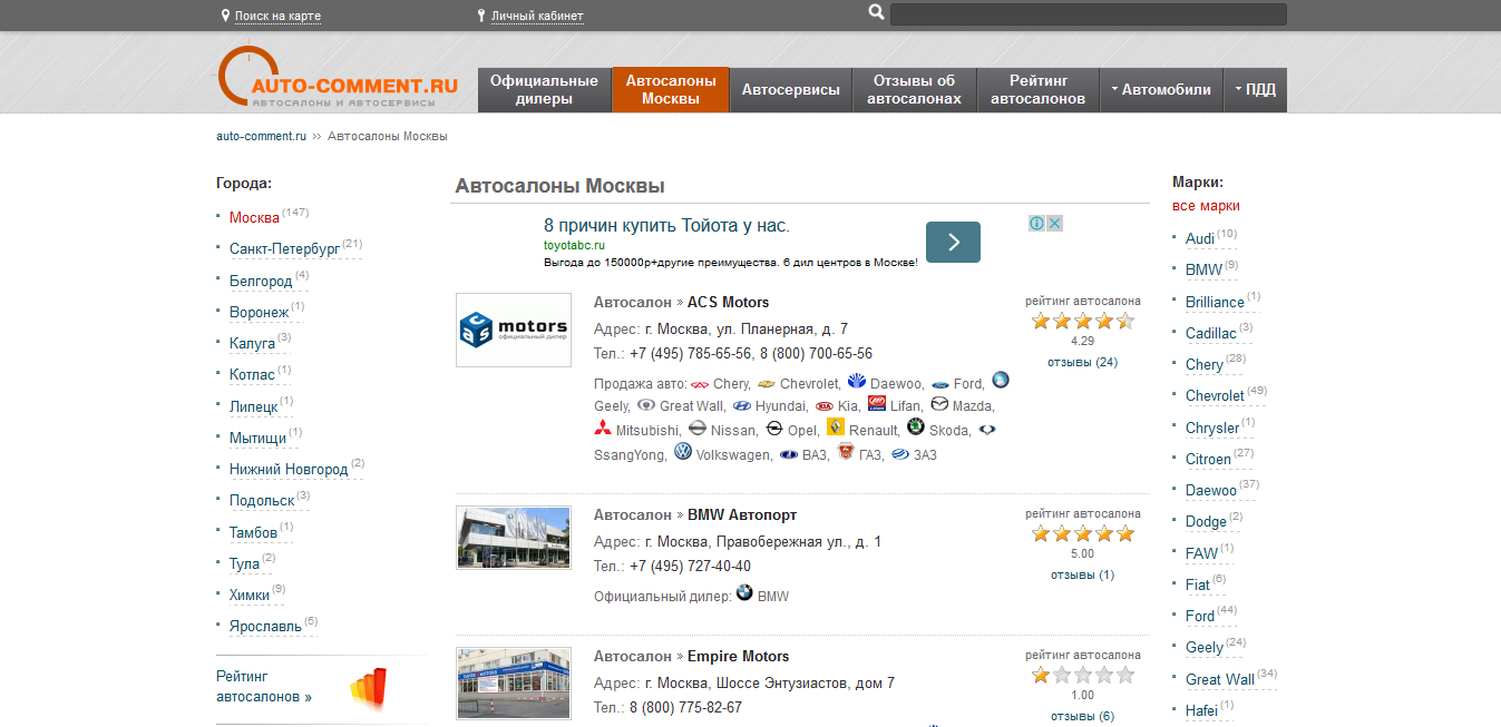 Скрипт автомобильного портала с объявлениями, автосалонами, дилерами, ПДД..