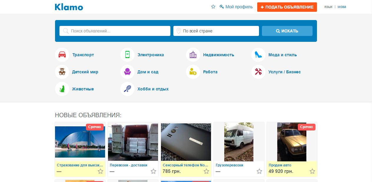 Скрипт доски объявлений Klamo [аналог OLX.ua]