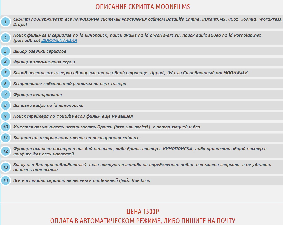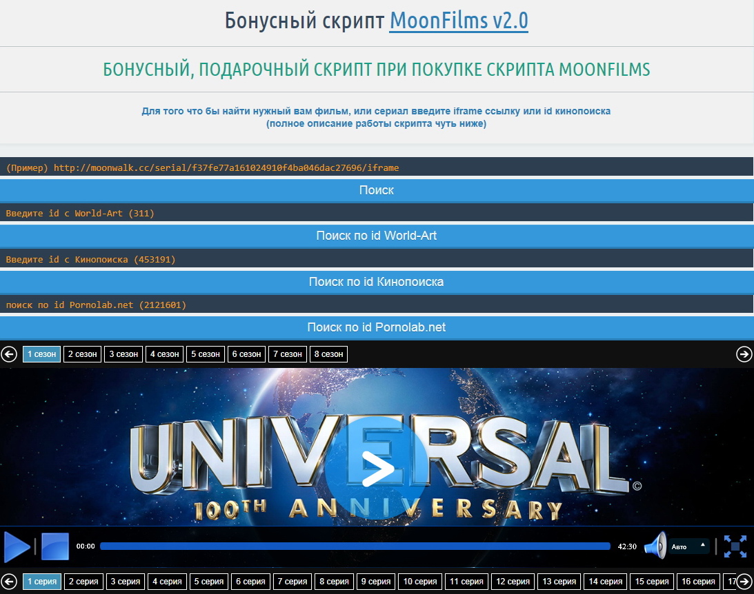Скрипт MoonFilms v2.0 + Бонусный скрипт