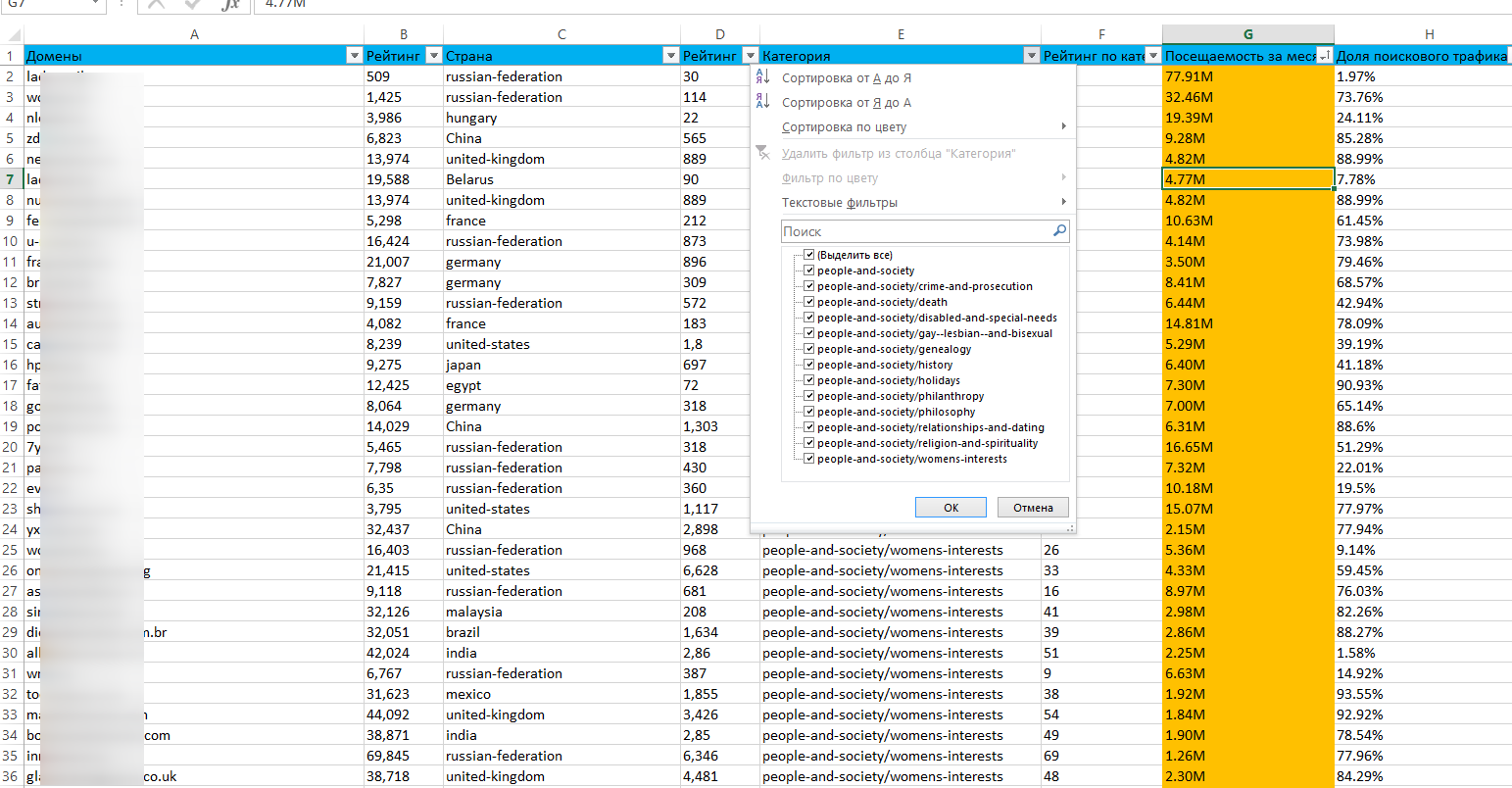 TOP-База Dating сайтов + все сайты Similarweb из раздела Люди и общество