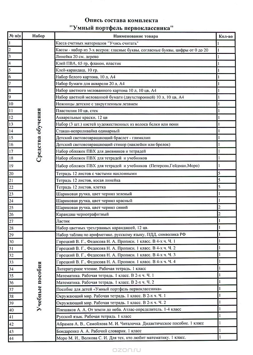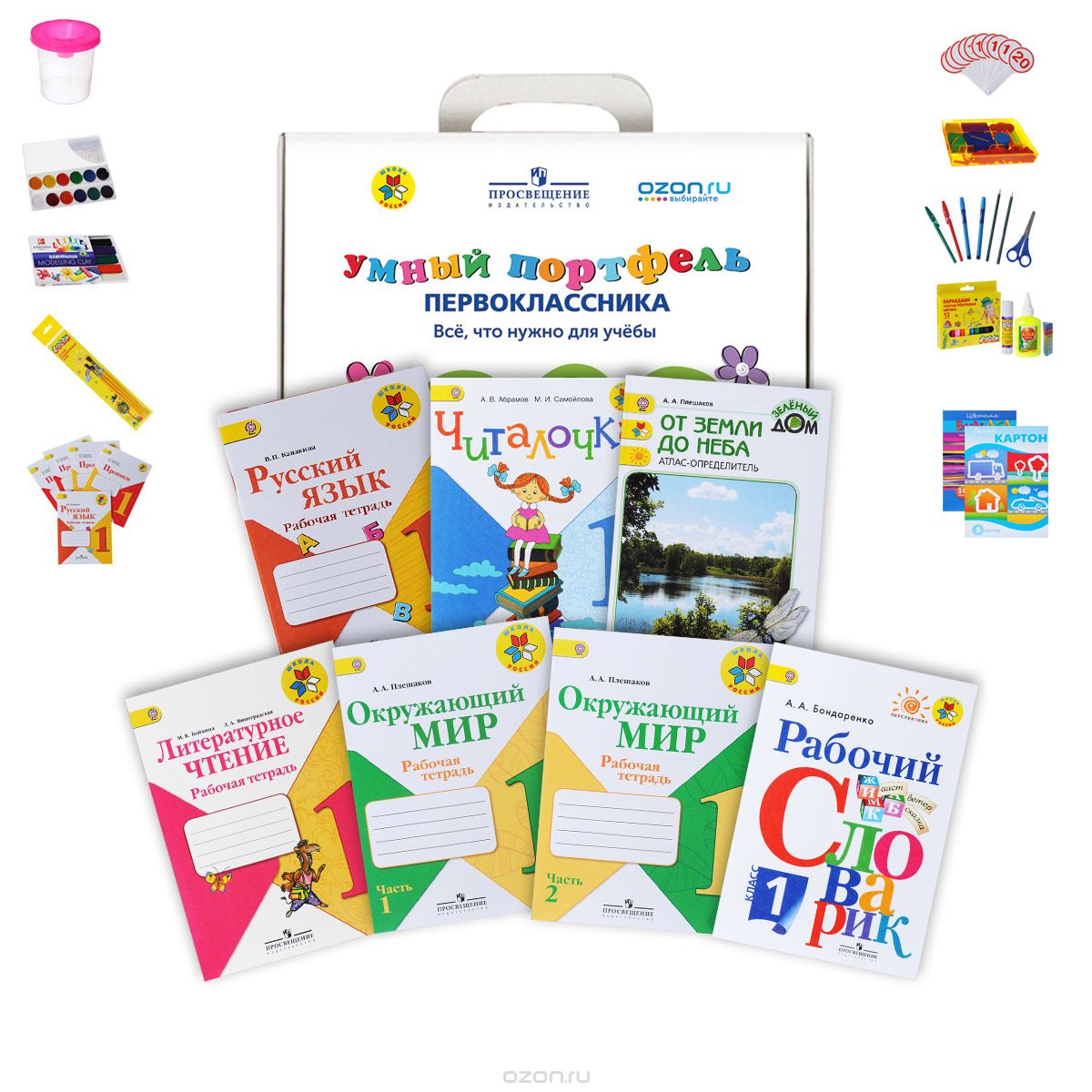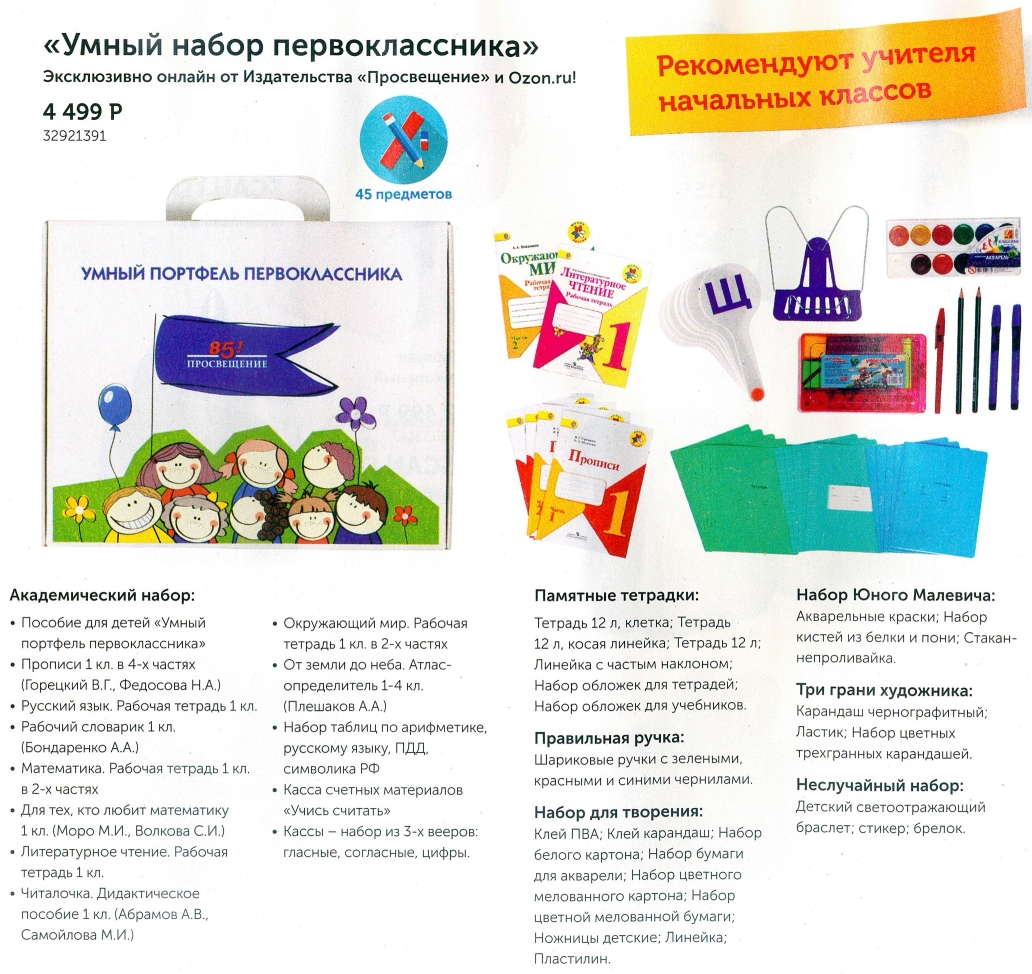 Умный портфель первоклассника (МАКСИМАЛЬНЫЙ комплект учебных пособий и канцелярских принадлежностей)