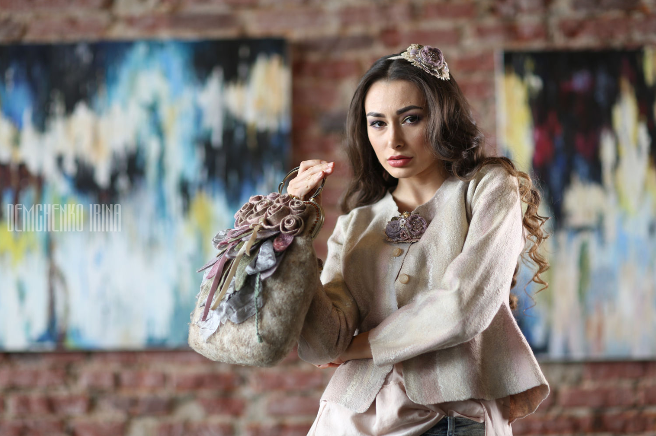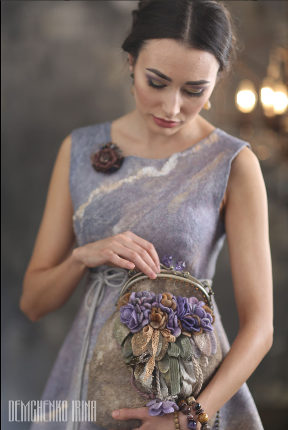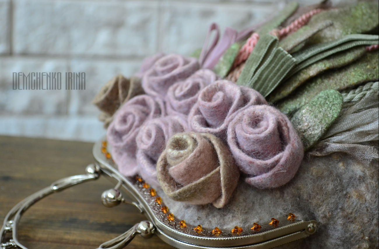 [Валяние] Фактурная сумка с цветочками [Ирина Демченко]