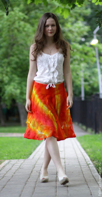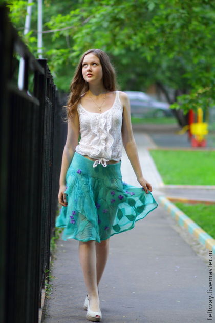 [Валяние] Летняя юбка-колокол из шифона и префельта [Снежана Костина]