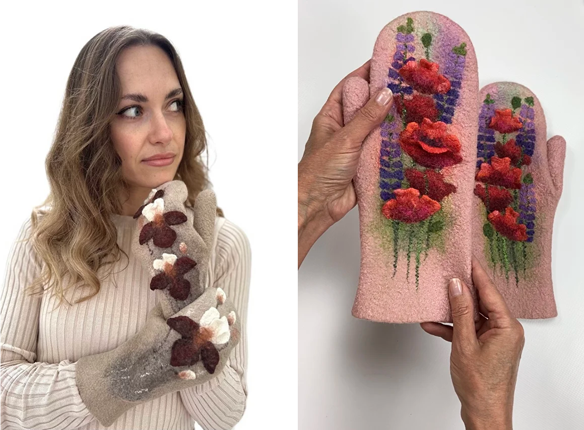 [Валяние] Варежки «Цветочные истории» [Шкатулочка] [Наталья Смольянинова]