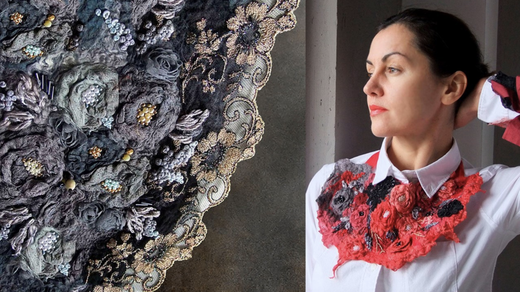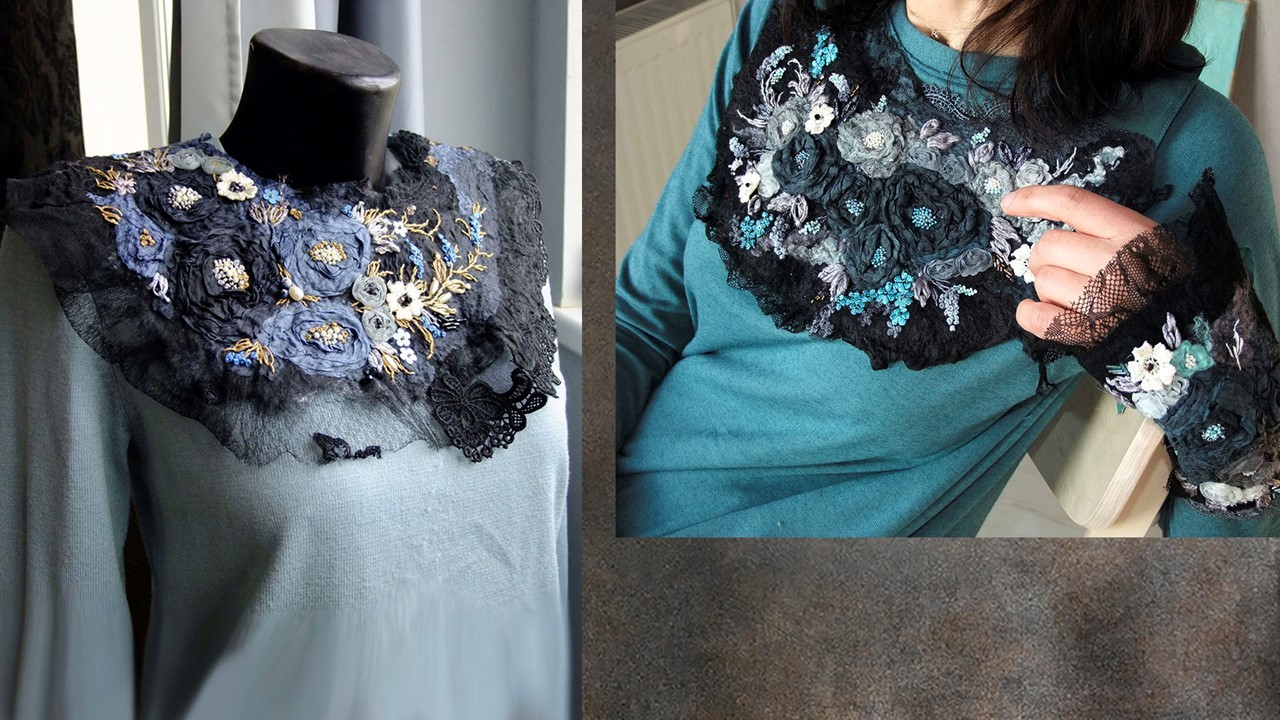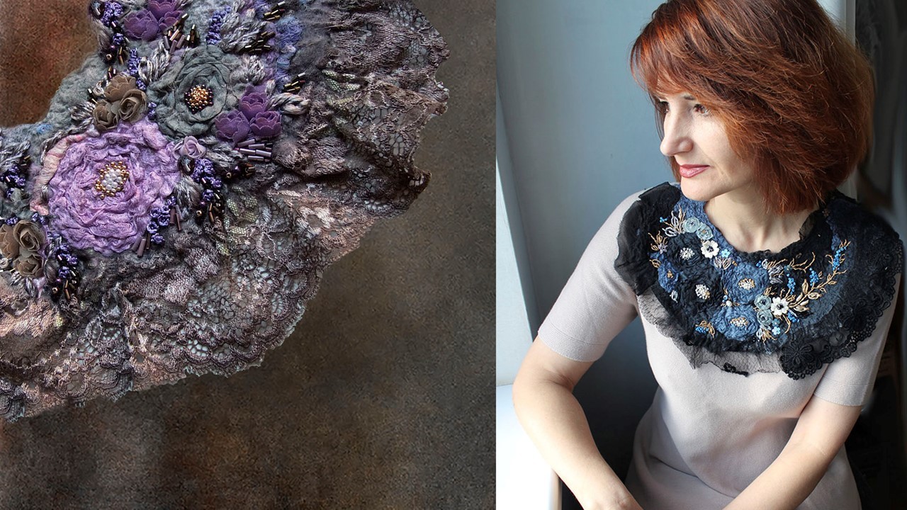 [Валяние] Воротник-оплечье Венок из роз [Ольга Гуляева]