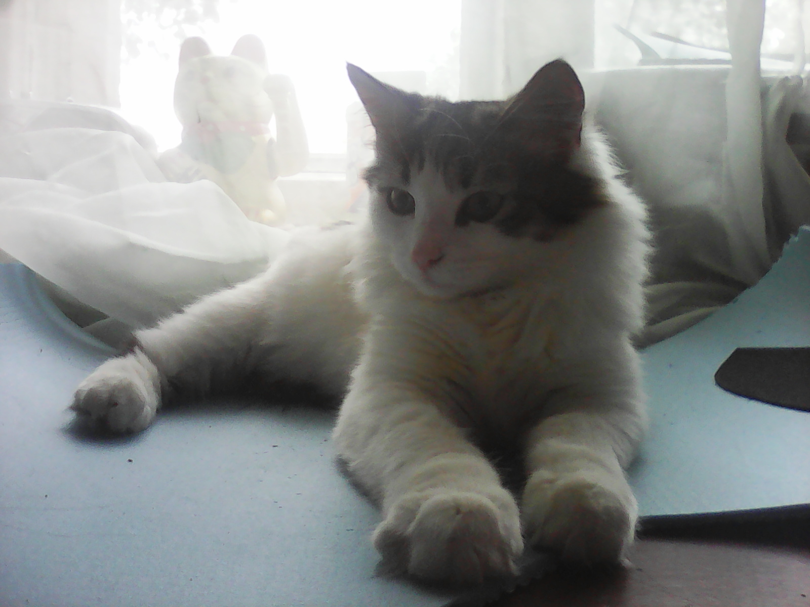 Ну вот однако, Кабанчик (это его домашнее имя) тоже уехал, к вероятным хозяевам, пока на испытательный срок... Почему Кабанчик? Ел один как оба старших котэ. Когда еда заканчивалась,, то пил воду. Когда вода заканчивалась (он ее своим безмерно пышным хвостом часто разливал), то шел питаться комнатными растениями. Не очень в курсе, какой у котов правильный вес. В 12 лет 6 кило нормально. В 4 месяца с небольшим 4 кило, наверное, тоже в норме ?