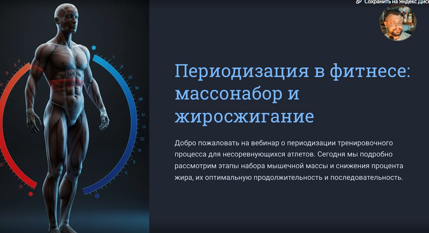 Складчина: Вебинары. Блок 4 [Александр Филиппов] Блок 4 31.Спина. Особенности тренировок 32.Антропометрия. Влияние на подбор упражнений и технику выполнения. 33. Антропометрия и соревнования. Выбор категории. 34.Вкусняшки и пищевое поведение . 35.Как вас обманывает фитнес индустрия. Как искать правду. 36.Диетология здорового человека. В чем отличие от спортивной и клинической 37.Тренировки и беременность 38.Расчет калорий: важность, методы и лайфхаки 39.Контролируемые параметры тренировки: время нагрузки, вес, отдых 40.Периодизация жиросжигания и массонабора для несоревнующиеся. Об авторе: Александр Филиппов Старший тренер сборной Краснодарского края по бодибилдингу и фитнесу Стаж тренерской работы 13 лет Спортивный врач. Цена 20000 руб. Скрытая ссылка Скрытая ссылка