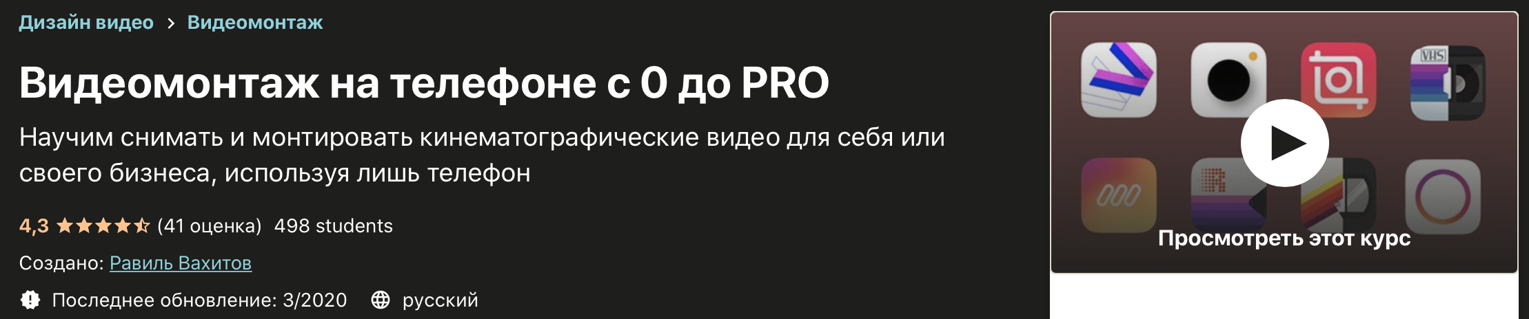 Видеомонтаж на телефоне с 0 до PRO [Udemy] [Равиль Вахитов]
