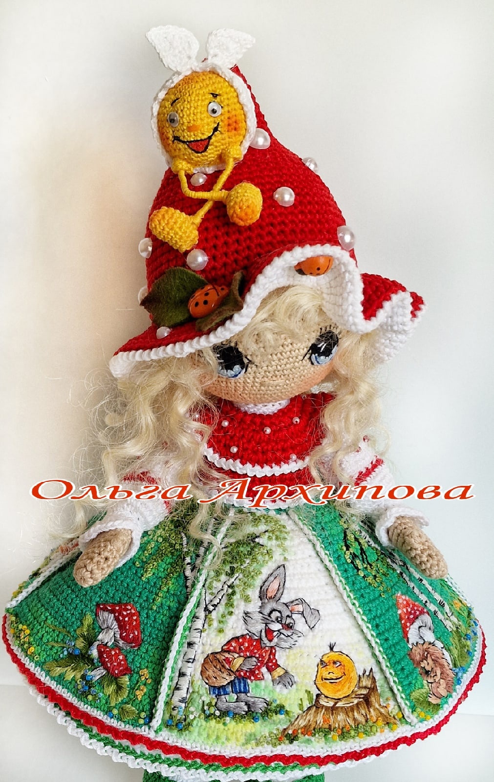 [Вязаная кукла] Кукла Зайчик и колобок [Ольга Архипова]