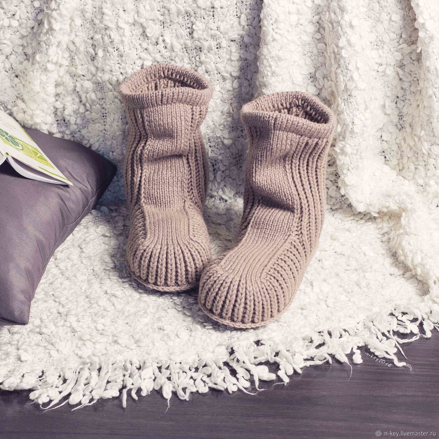 [вязание] МК по вязанию спицами вязаные домашние тапочки