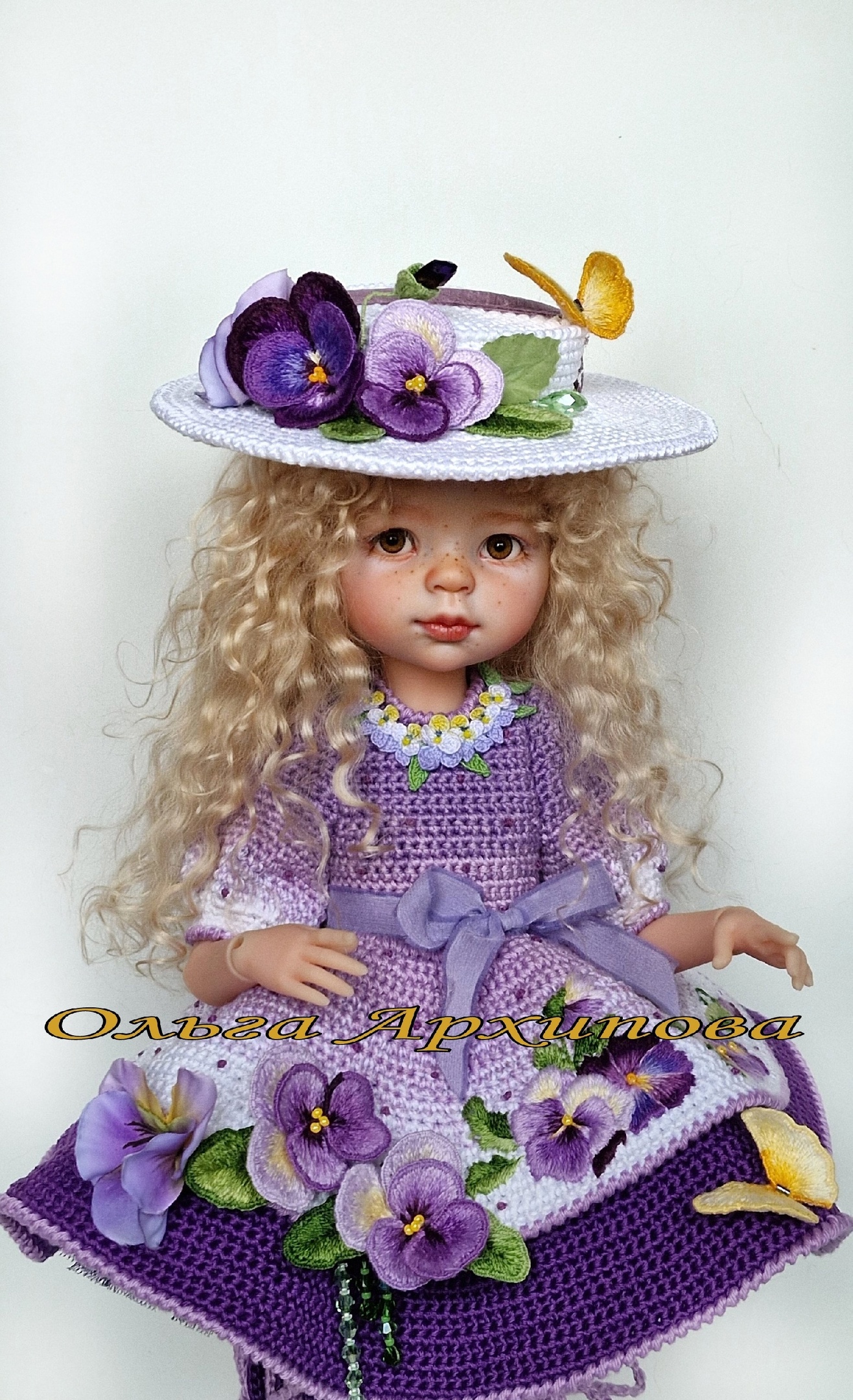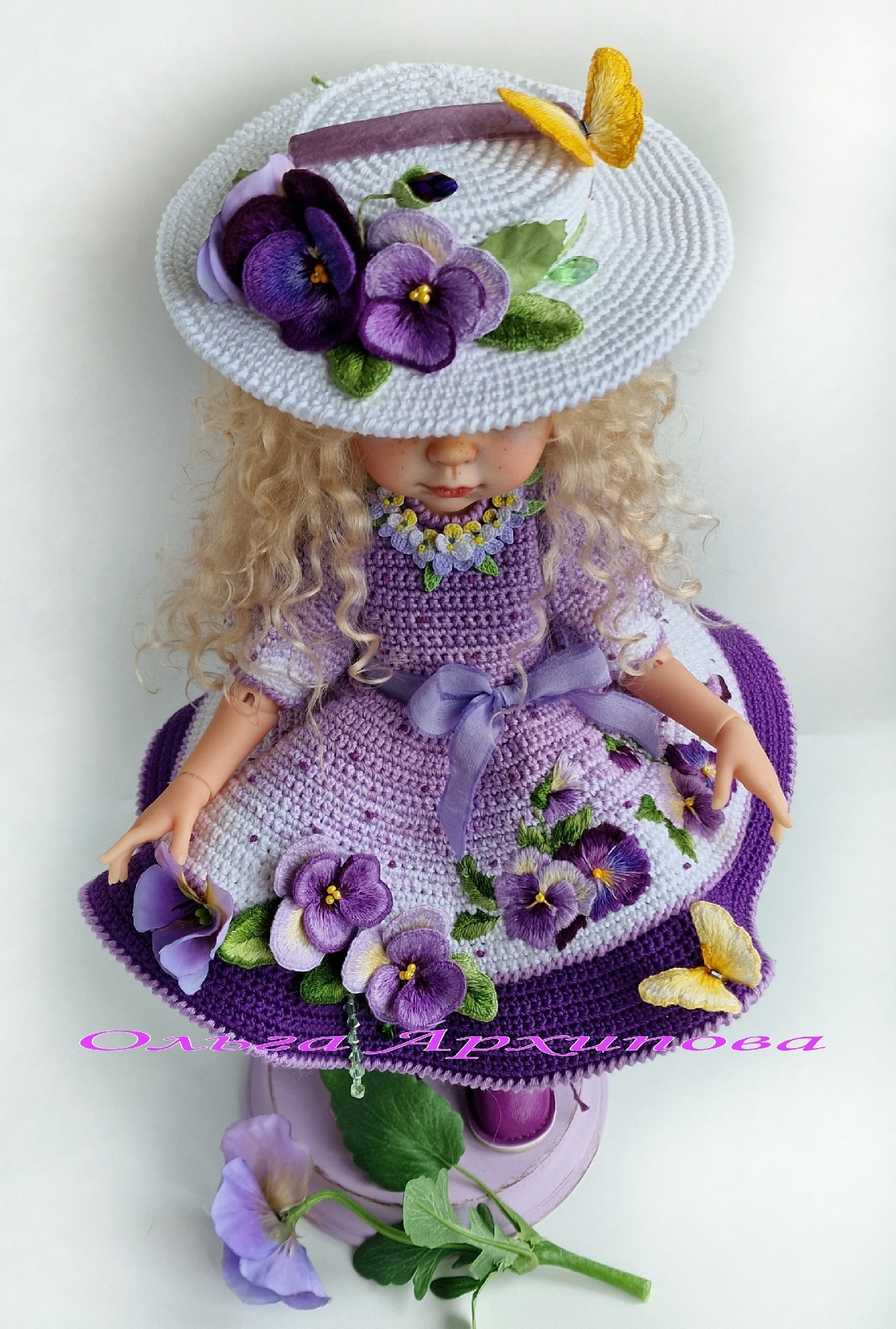 [Вязание] Наряд для куклы "Анютины глазки" [Ольга Архипова]