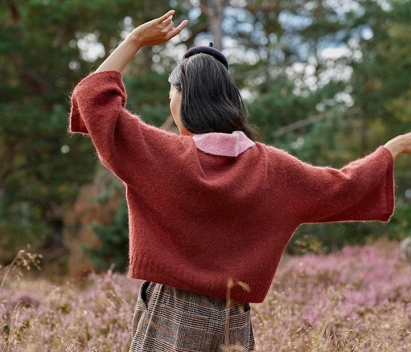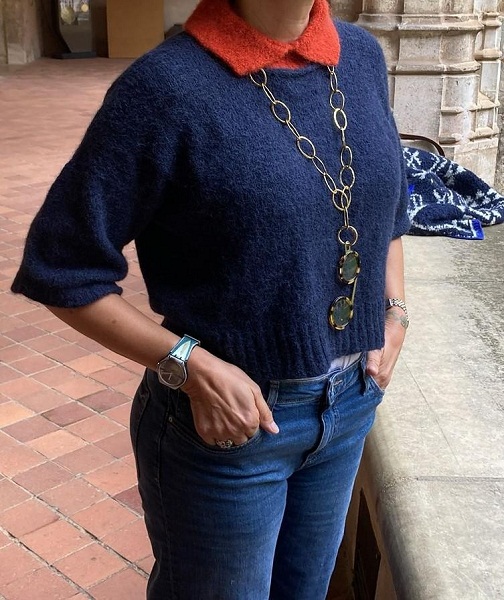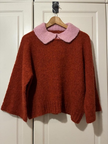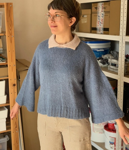 [Вязание] Женственная блуза с красивым контрастным воротником Laakso, вязаная спицами сверху [Вяжи.ру] [Camille Romano]