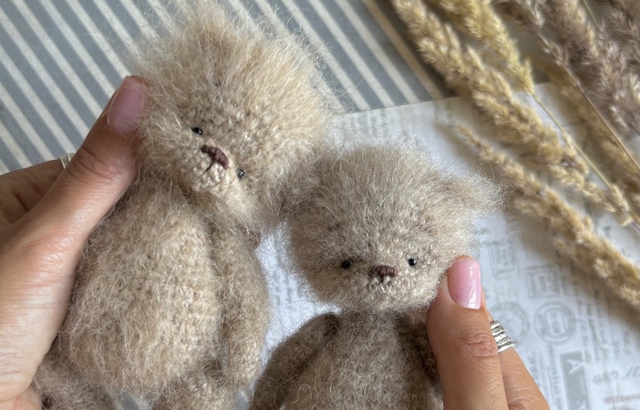 [Вязаные игрушки] Маленький мишка в чепчике лягушонка [Мой мишка] [Анастасия Пономарева]
