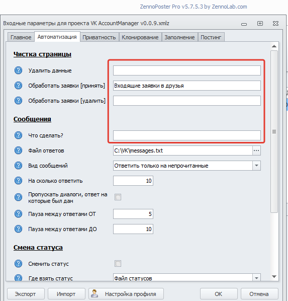 VK. Глобальная автоматизация. Управление аккаунтами. ZP